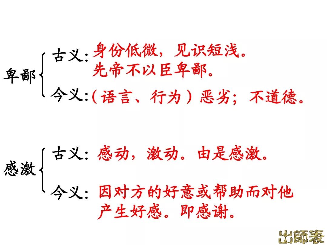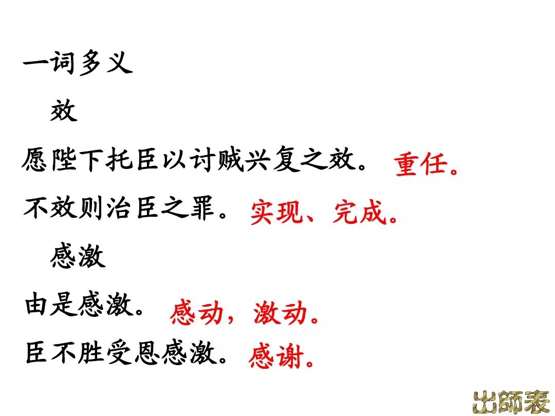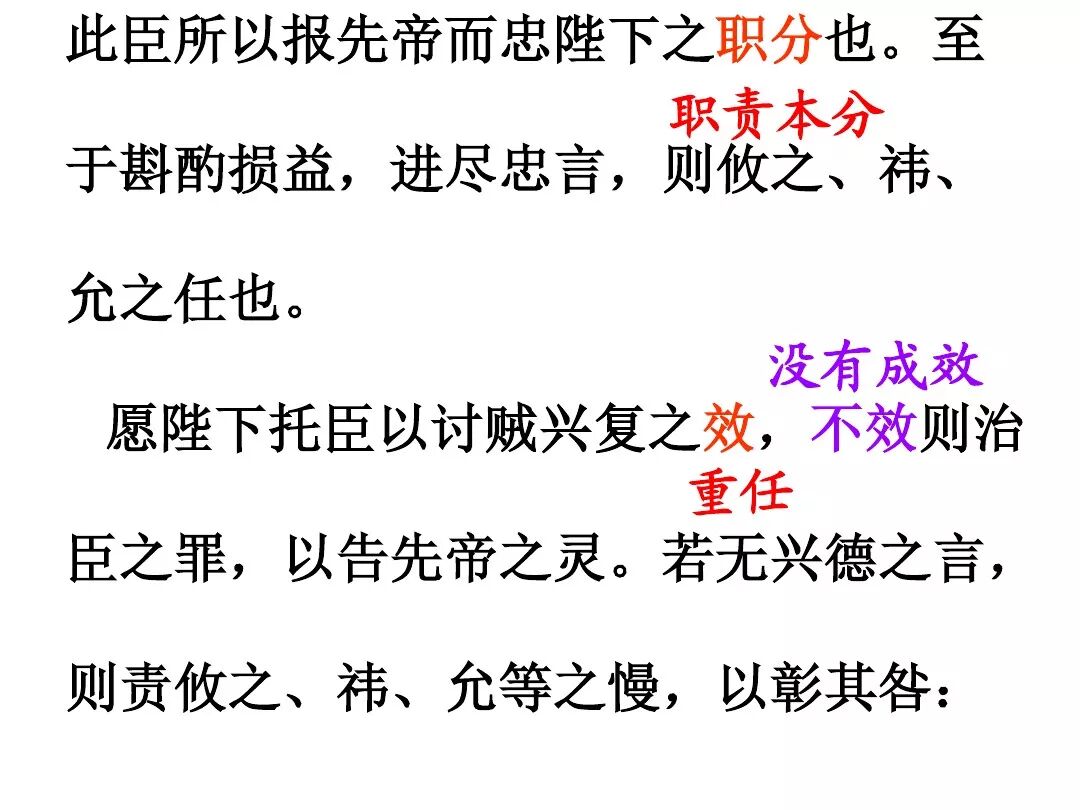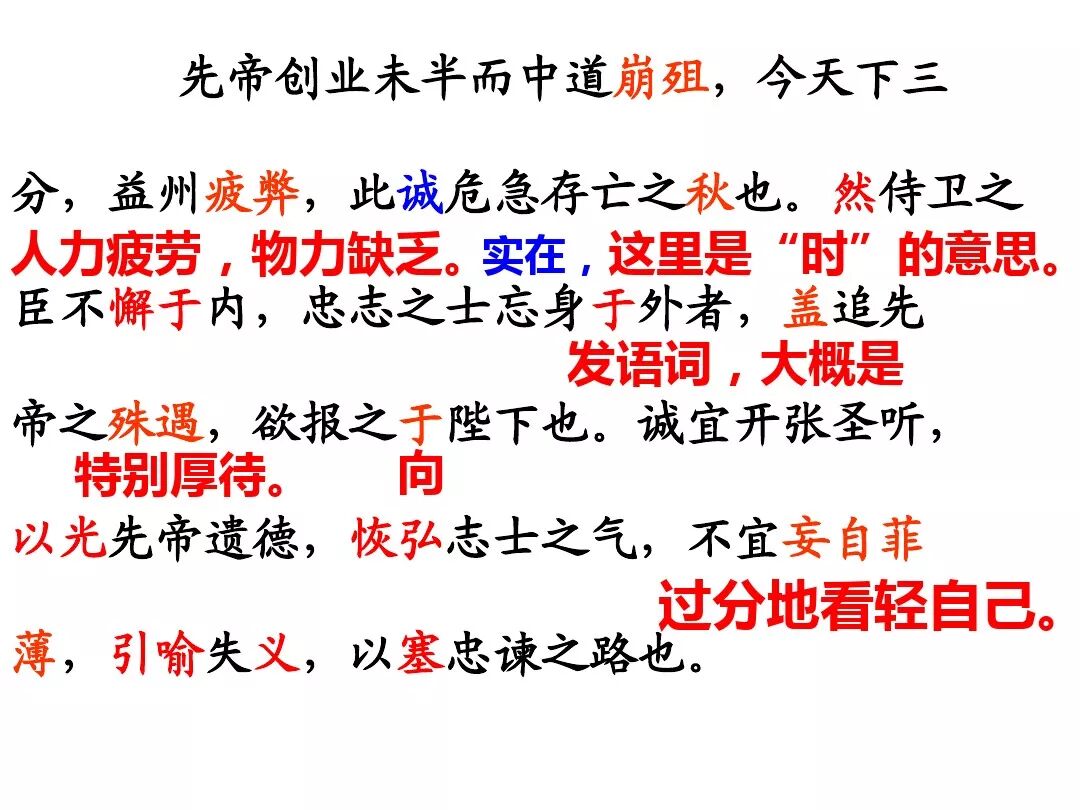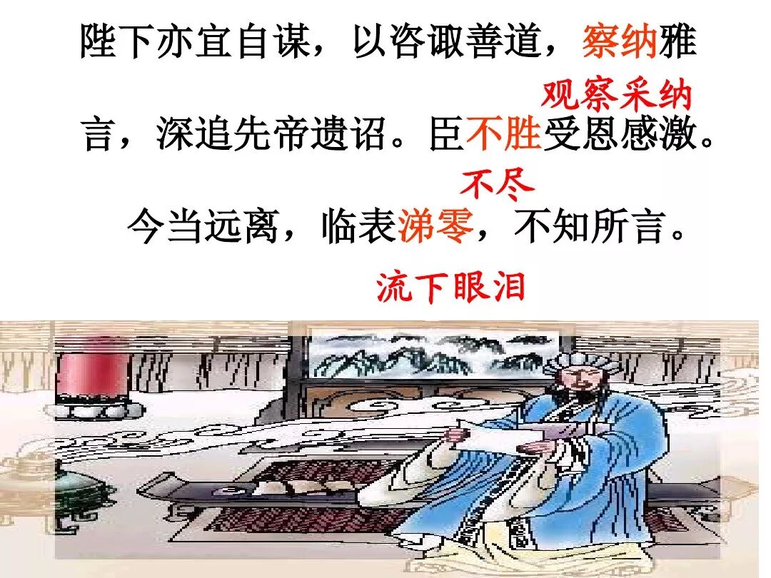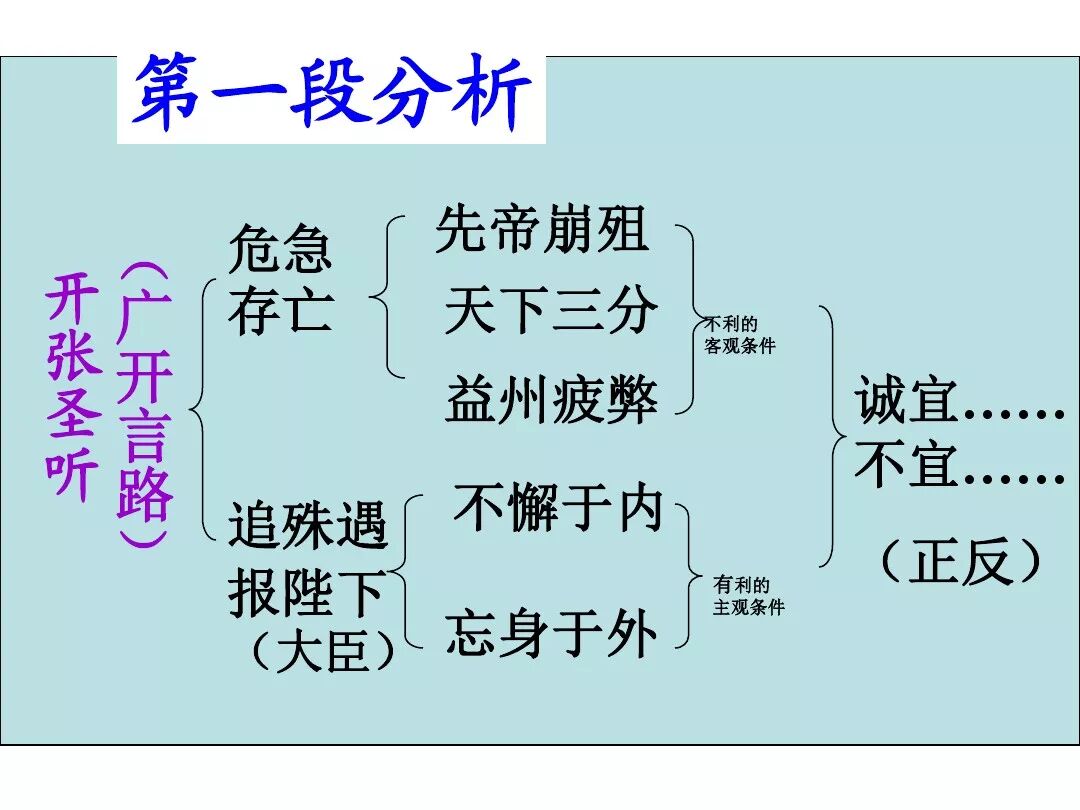 3、文中回顾了三顾茅庐和临崩托孤两件事,表达了受恩感激之情。
