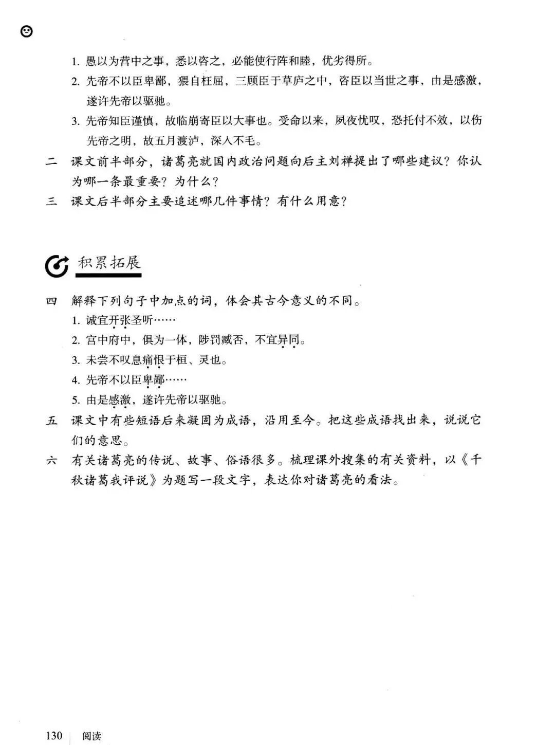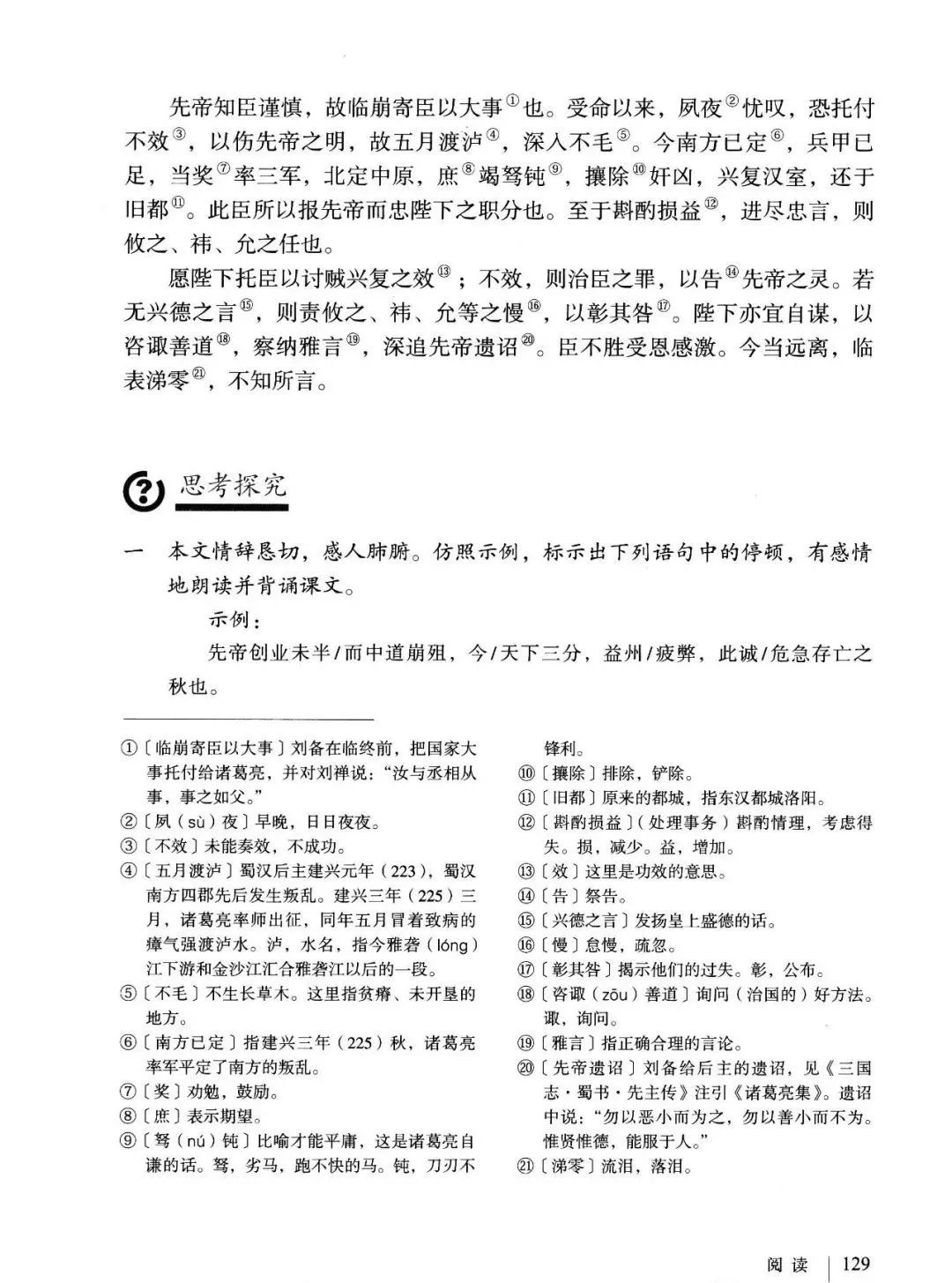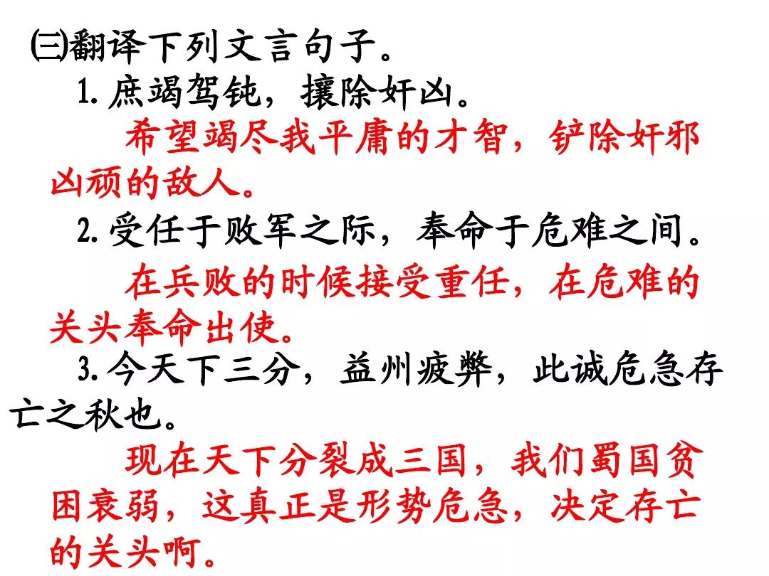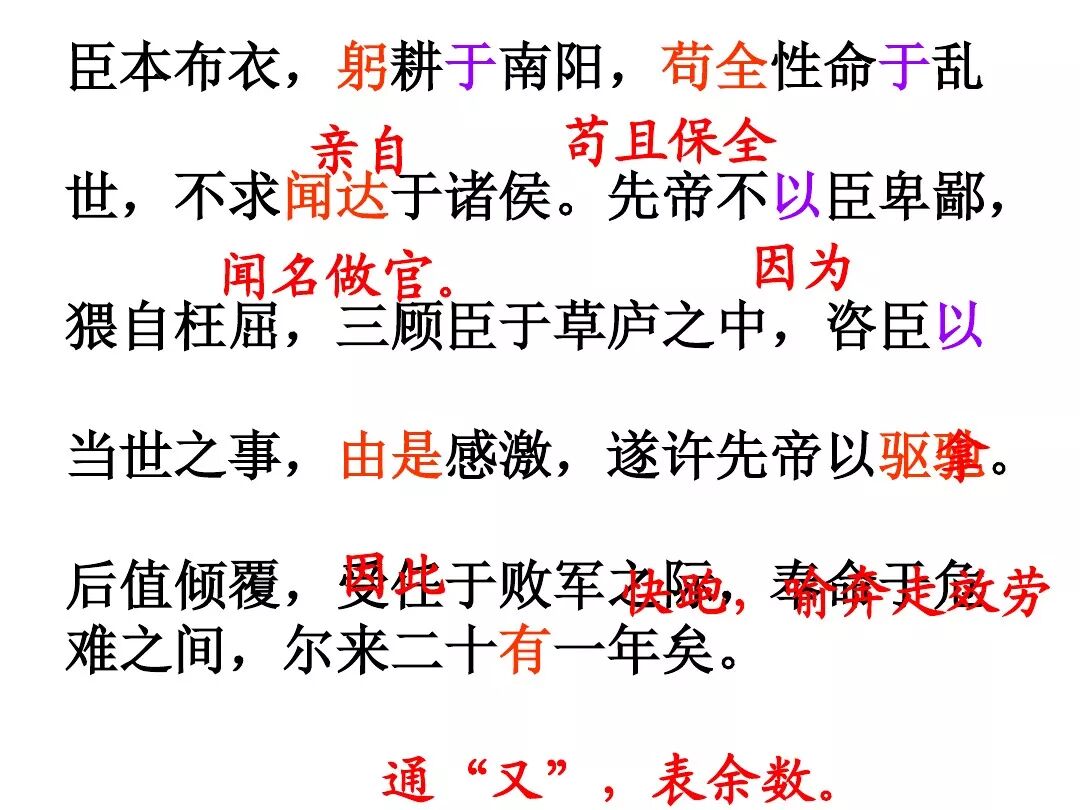 3、文中回顾了三顾茅庐和临崩托孤两件事,表达了受恩感激之情。