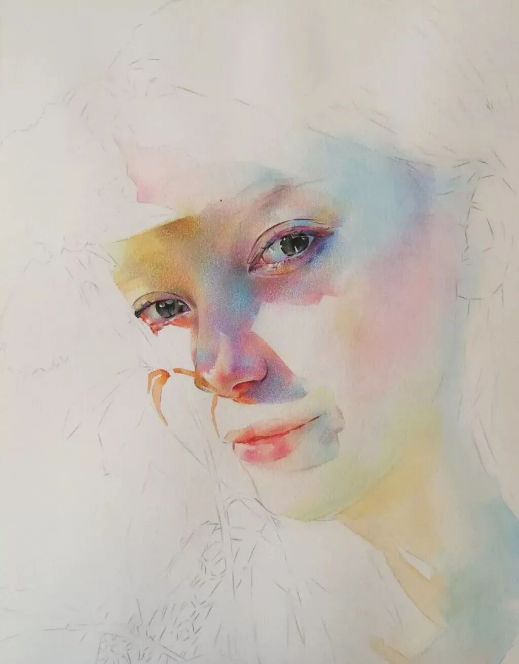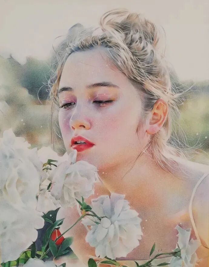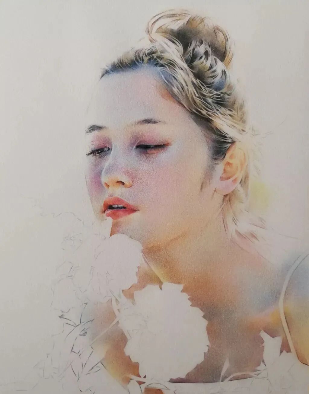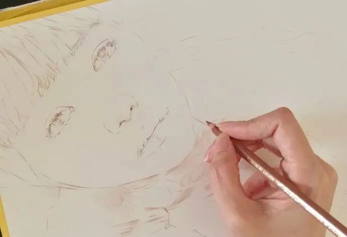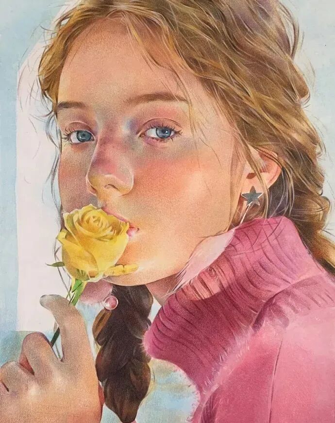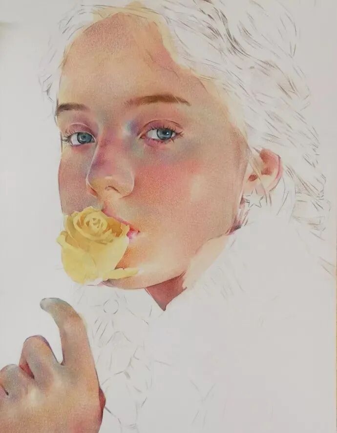 工具:卡达PABLO油性彩铅+三福霹雳马起型小提示:1、确定画面大致长宽比例;2、确定画面中心;3、确定人物面部的十字方向;4、认真比对面部比例,三庭五眼是基础;5、注意嘴角的弧度和眼角的位置;6、注意大型,不要总抠细节。一定要逐步深入《黄玫瑰》