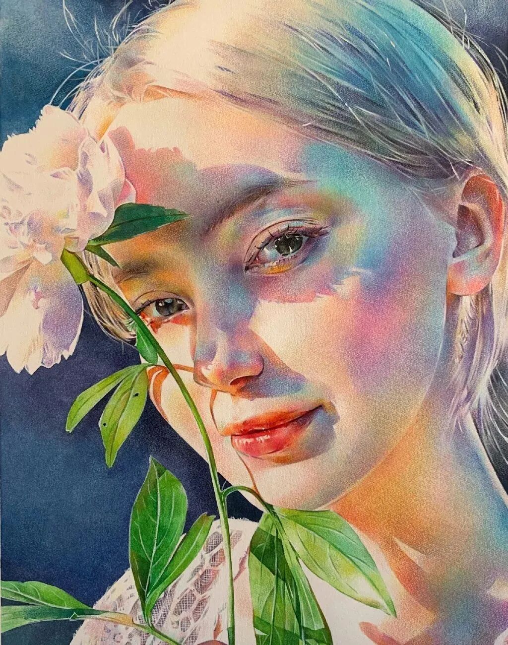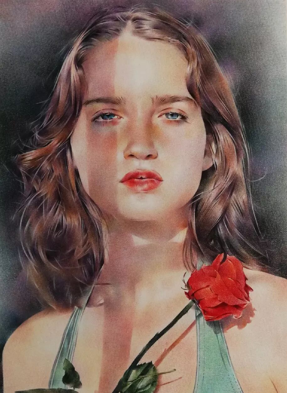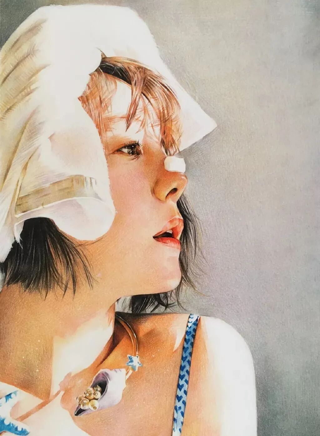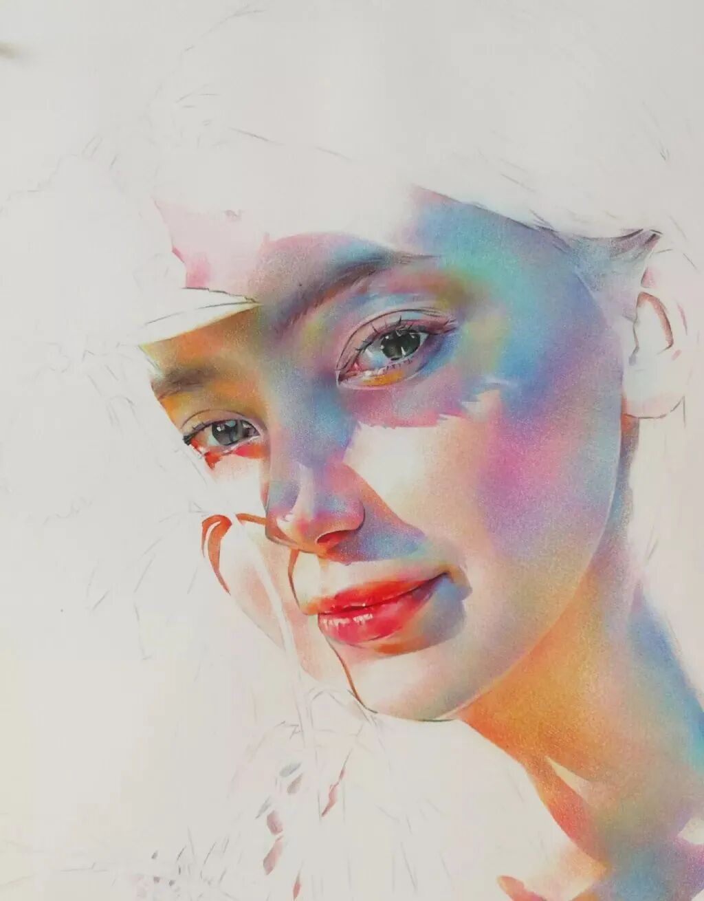 工具:卡达PABLO油性彩铅+三福霹雳马起型小提示:1、确定画面大致长宽比例;2、确定画面中心;3、确定人物面部的十字方向;4、认真比对面部比例,三庭五眼是基础;5、注意嘴角的弧度和眼角的位置;6、注意大型,不要总抠细节。一定要逐步深入《黄玫瑰》