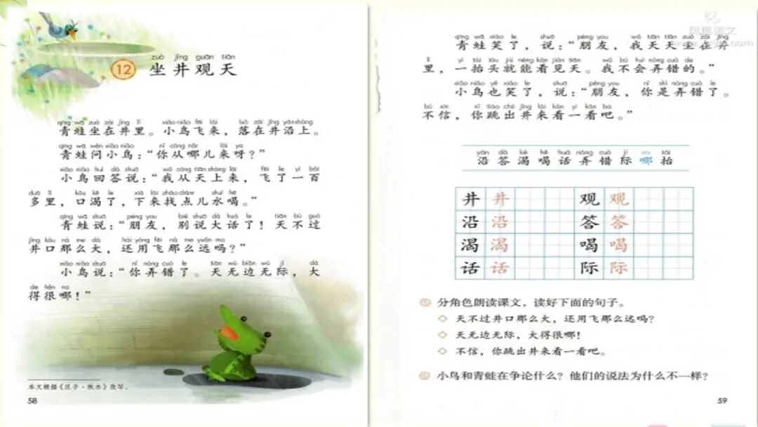 今天和大家分享李慧老师执教的《坐井观天》,该课例选自“一课一优”统编小学语文二年级上册优质课。