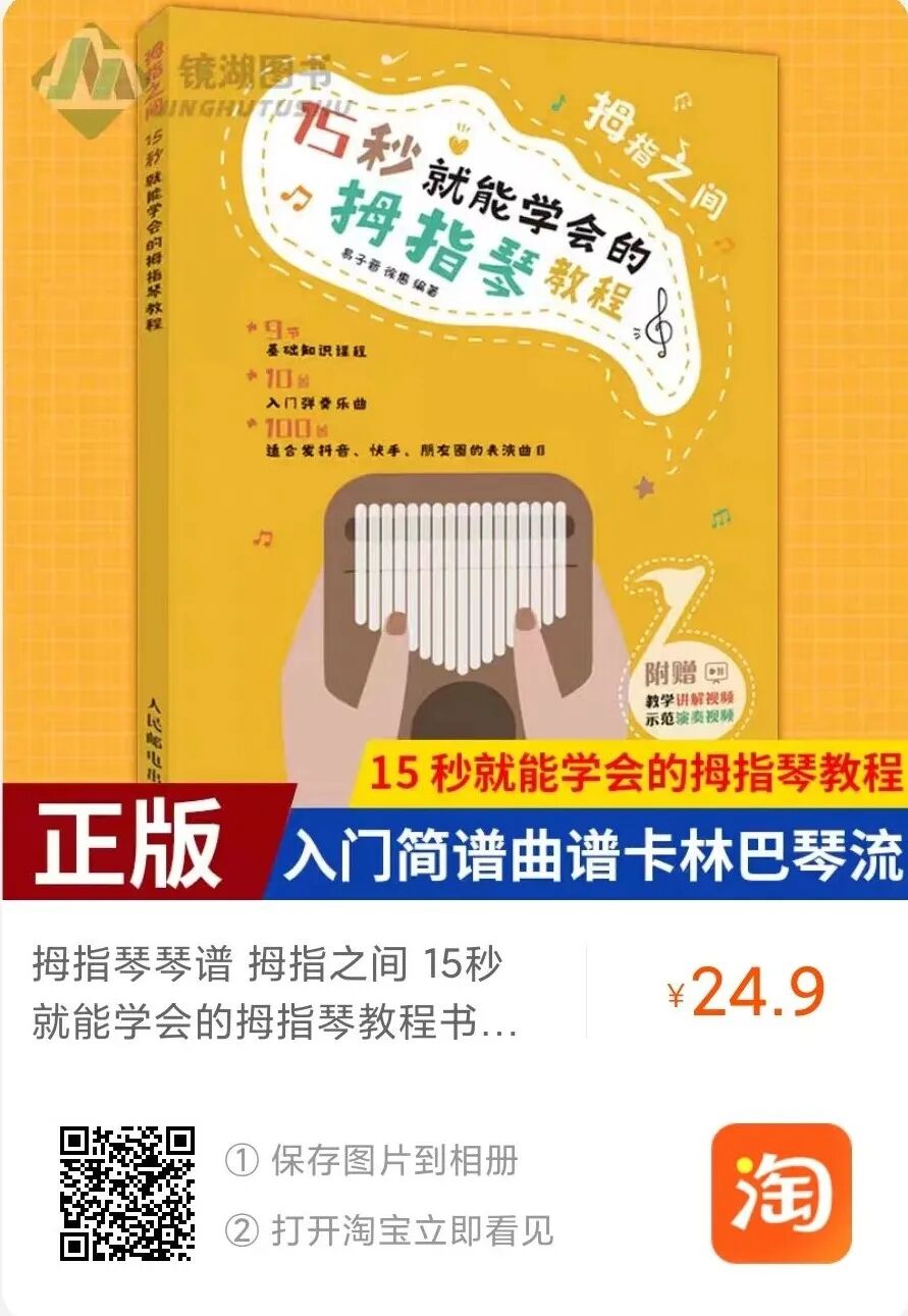 菌菌前几天介绍了网红乐器拇指琴的基础知识,还以《同桌的你》为例,带大家感受拇指琴超简单的弹奏方式~ 没看过的小可爱可以点上图去补课▲ 今天,我们就要学以致用,教大家用拇指琴弹奏乐曲《小星星》~ 小星星 这首乐曲简谱非常简单,只需要根据简谱上的数字依次弹奏就可以了,注意“-”的位置,在这篇乐谱中一个“-”表示音长多0.5秒~ 现在来跟着视频学习~ 以上教程是不是超级简单?更多乐曲简谱都在《拇指之间 15秒就能学会的拇指教程》,超全干货内容,让你学习一步到位! ▉活动价:¥24.9 ▉购买链接:¥8dw4cGVO1sL¥ 图书+视频,学习更轻松 书中用九节课时系统全面地讲解了拇指琴的基础知识,包括拇指琴正确的演奏方式、简谱的基础知识以及常见的弹奏技巧~ 110首乐曲按难度分类,科学的排列方式,让你牢牢掌握拇指琴弹奏技巧,带你一步步进阶~ 乐曲分类 ▲10首【基础】乐曲 ▲30首【进阶】乐曲 ▲50首【入门】乐曲 ▲20首【提升】乐曲 如果觉得有些地方没太看明白,你还可以参考书里附赠的教学视频,搭配着学习更轻松~ 现在新书上架还可以享受5折优惠,原价¥49.8,现在买只要¥24.9~ 购买方式 ///////////////// ///////////////// 或者复制下方淘口令,打开淘宝 ?就可以直接购买啦? 【¥8dw4cGVO1sL¥】 这么简单易学的拇指琴,赶紧学起来叭~ 精 / 选 / 阅 / 读 (点击下方图片即可阅读) ??喜欢我们的书,给个“三连”吧??↘![]()