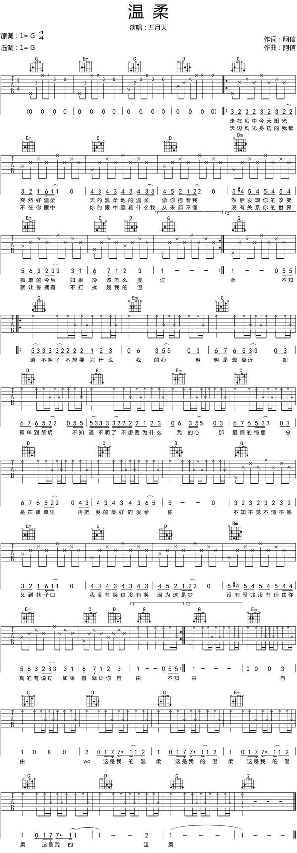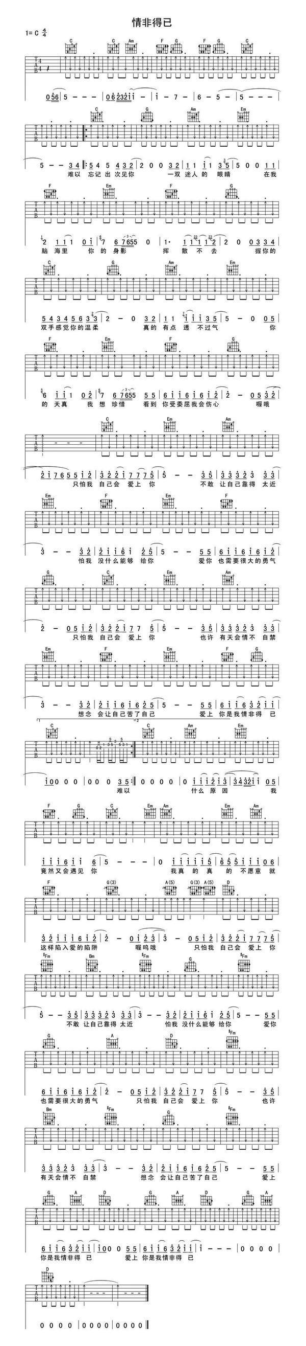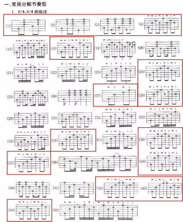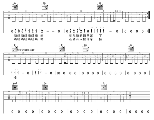 花了10天时间整理了一份超详细的自学吉他攻略,总结了15个自学步骤,你只要按照这个步骤循序渐进去学习就可以了。 具体方法可以参照如下视频: (1)认识简谱音名唱名的关系 在简谱中,用以表示音的高低及相互关系的基本符号为七个阿拉伯数字,即1、2、3、4、5、6、7,唱作do、re、mi、fa、sol、la、si,称为唱名。 (2)全音半音的关系 在音乐中,相邻的两个音之间最小的距离叫半音,两个半音距离构成一个全音。 把C D E F G A B 这一组音的距离分成十二个等分,每一个等分叫一个“半音”。两个音之间的距离有两个“半音”的 ,就叫“全音” 。 Do-Re是全音关系,Re-Mi是全音关系,Mi-Fa是半音关系,Fa-Sol是全音关系,Sol-La是全音关系,La-Si是全音关系,Si-C是半音关系。 (3)简谱音高标记 在简谱中,数字下面有两点代表这个音是倍低音,数字下面有一点代表这个银十低音,数字下面没有点那就代表中音,数字上面有一个点达标高音,数字上有两个点代表倍高音。 (4)调号 以下图片代表调号的标记,1=C代表调号的起唱调型的实际音高 (5)简谱上的基本符号 (6)拍号 (7)附点音符 (8)延音线 (9)休止符 我们先看下面的六线谱: 小星星大家都会唱,下面的数字1155665是简谱,那么这些音在吉他的什么位置呢? 我们通过六线谱来标记音,从上到下,分别是123456弦。 1-Do这个音,在5弦上标了一个3,我们叫它「5弦3品」,弹法是左手按住5弦第3品,右手拨5弦,出来的音就是1-Do; 5-So是「3弦空弦」,6-La是「3弦2品」,4-Fa是「4弦3品」,3-Mi是「4弦2品」,2-Re是「4弦空弦」 通过六线谱找音的位置,方法就是「几弦几品」,就是这么简单,当然后面学了和弦、加入各种节奏之后,六线谱又会有不一样的记法,如下图 如果你想要更加详细的去认识六线谱可以看以下这篇文章: (1)半音阶练习基本要领 (2)半音阶如何练习 首先要明白方法节奏:爬格子是一种左右手配合的练习,也是吉他的基本功。 具体方法可以参照如下视频: 课后练习: 大家以后也可以自由组合指型。例如1243、 1342、 1432....等等大家自由发挥对自己琴技提升即可。 (1)认识C调mi型音阶 首先看下面一张C调指板音阶图 经常我们都是按照顺序从6弦到1弦,再从1弦到6弦来回的练习,开始也可以这样练习一小段的时间,大概的熟悉一下指法。稍微熟练一点之后可以加快一点速度,最好开着节拍器来练习,让自己有个稳定的节奏感。 按顺序练习音阶的时间不用太长,下面就是我们介绍的音阶的主要的练习方法。 (2)弹歌曲简谱,练习音阶 我们用一些非常简单的小曲来练习音阶,音符顺序打乱的歌曲旋律更能锻炼我们的反应能力,通过弹奏简单旋律达到熟悉音阶的目的,就比如唱歌一样,1234567你可以唱的很溜,顺序一搞乱唱不了了,音阶练习也是这样的。不要想着要把音阶记住,只管把一些简谱弹得非常的流畅。不知不觉你就发现音阶熟的不行,还能形成条件反射,一说1(do),立马无名指按5弦3品,6(la)立马中指按住3弦2品。 我们就用一首无人不知无人不晓、简单到不行的《小星星》来完成对音阶深刻记忆,看下图: 记住,我们不需要上面的6线谱,它是阻碍你快速进步东西。只看下面的简谱,对应着mi型音阶找到12345,每一个音符的位置然后弹出来。上面两行是在中音区演奏的,后面两行是高音旋律,高八度的,有一个高音的6,这个音阶是没有这个音的,用无名指移到1弦第5品来弹,然后再把无名指移到第3品弹高音5。 一边弹一边把简谱也唱出来,至少心里要默默的唱,很快你就你就能把简谱记住。 开始按顺序的来回弹mi型音阶,稍微熟悉一点就加快速度。练习一下之后就看着简谱慢慢找位置把,歌曲旋律弹出来,后面一段旋律是一样的就是音高高了八度。 这首吉他伴奏谱,我录制吉他伴奏时用了两种不同的节奏型,第一种是网上找的伴奏,用的是我们最熟悉的一种节奏型T323,T可以(4弦、5弦、6弦)和弦的根音不同T也不同。后面一张伴奏是自己编配的,用的是低音交错的节奏型,听起来更加丰富。 就看着这个吉他伴奏谱的简谱,再根据C调mi型音阶指法来弹歌曲旋律,听着伴奏把这首小星星弹得流畅了,mi型音阶也就差不多了,在找几首歌弹一下,一定可以非常熟! (1)C和弦 食指放在2弦的第一品上,中指放在4弦的第二品上,无名指放在5弦的第三品上: (2)Dm和弦 食指放在1弦第一品上,中指放在3弦第二品上,无名指放在2弦第三品上: (3)Em和弦 食指放在5弦的第二品上,中指放在4弦的第二品上: (4)G和弦 有两种按法: a) 食指放在5弦的第二品上,中指放在6弦的第三品上,无名指放在1弦的第三品上: b) 中指放在5弦的第二品上,无名指放在6弦的第三品上,小指放在1弦的第三品上: (5) Am和弦 食指放在2弦的第一品上,中指放在4弦的第二品上,无名指放在3弦的第二品上: 首先我们来学习右手的手指代号 P指负责吉他的6、5、4弦 i 指负责3弦 m指负责2弦 a指负责1弦 常用分解节奏型的第二个的第四拍,要求右手 i m a指同时弹响123弦 2/4拍、4/4拍红色框中的大家要掌握,练习时注意手型,如果对右手手型还有疑问,可以看以下这篇文章: 选调1=C 用C调指法弹,变调夹夹3品 弹唱难度:?? 和弦:C-Dm-Am (1)左手技巧 吉他在长期的发展过程中出现了非常多的演奏技巧,这次分析一下民谣吉他左手常用的一些基本技法:击弦、勾弦、滑弦等,让吉他演奏效果变得更加丰富、灵动。左手通常称为技术之手,负责各种按弦,能不能把指法快速准确的按到位