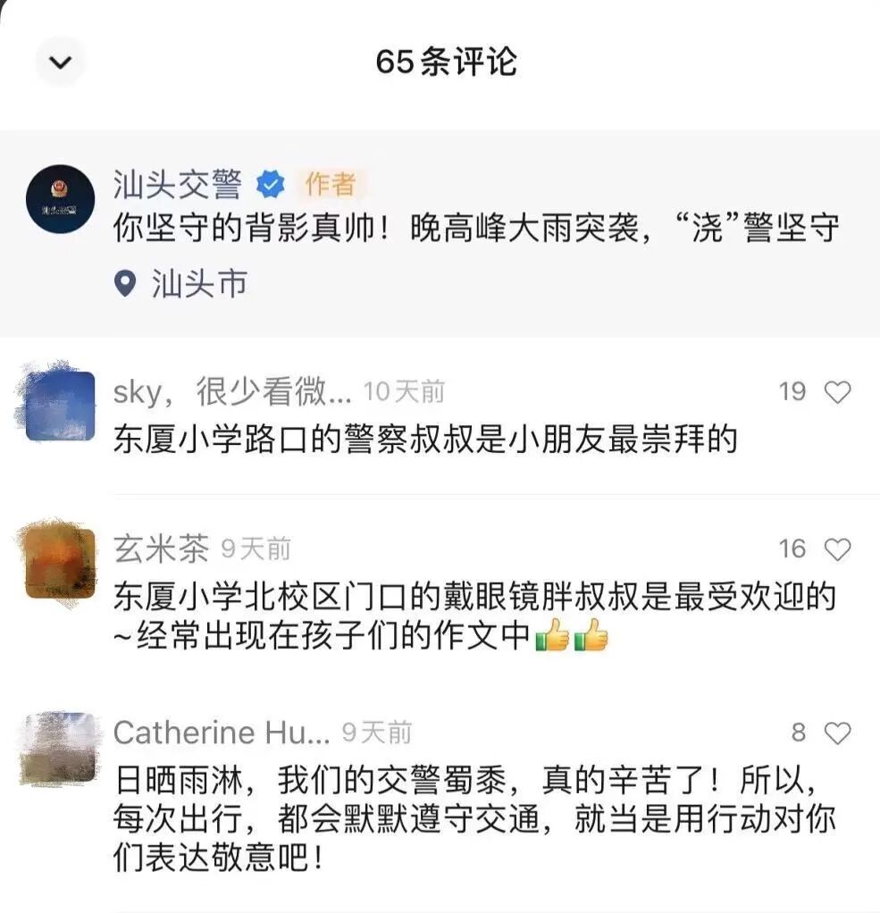你坚守的背影真帅!晚高峰大雨突袭,“浇”警坚守