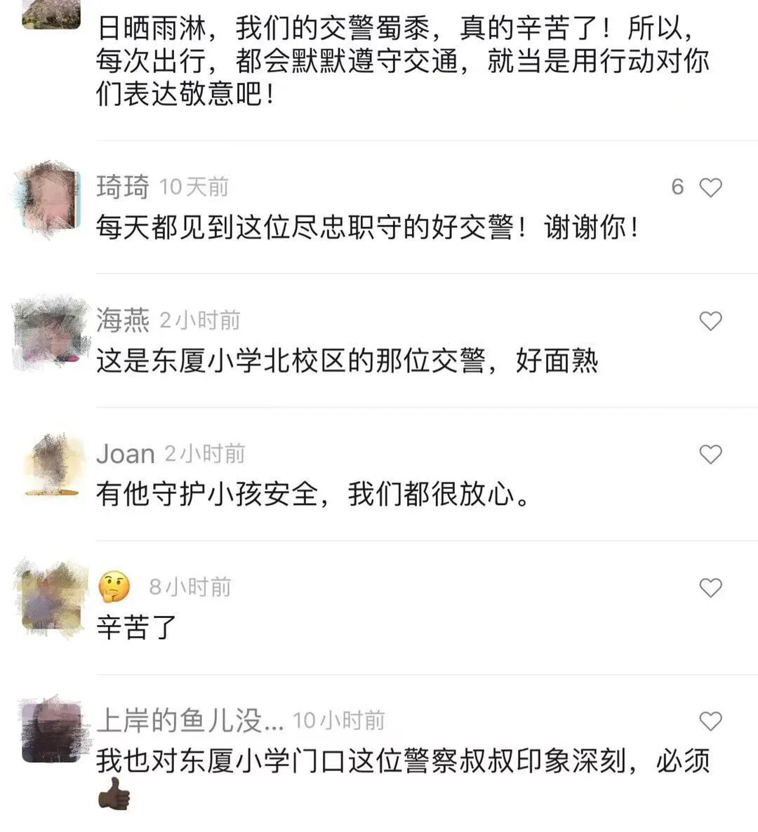 点击蓝字 关注我们 今年已是罗金松加入辅警队伍的第五年,东厦长平路口和东厦小学北校区校门口是他的两个执勤“常驻点”。一个是医院周边区域路口,另一个则是学校门口,人、车流密集,执勤压力较大。由于东厦小学北校区地处闹市区,周边道路较为狭窄,加上大量接送学生的车辆涌入,很容易造成道路拥堵。早上7点20分和下午4点20分左右,罗金松会准时出现在校门口为上下学的学生“保驾护航”,成为大家熟悉的“胖叔叔”。 有一次,罗金松在执勤时看到一小学生独自站在斑马线上啜泣,情绪很不稳定,便非常耐心地安慰开导他,边指挥交通边照看这名学生,直到家长接走才肯放下心来。诸如此类的事情还有很多,因此学校的老师都赠予他一个生动形象的称号——学生“守护神”。 这样一位令大家印象深刻的“胖叔叔”,自然成为不少学生写作文的素材来源。六年级学生林煜桦十分佩服罗金松的敬业精神,用富有真情实感的文字向他致敬。郑宏鑫同学则在作文中回忆起自己赶路参加围棋比赛的途中遇到塞车,罗金松及时“现身”路口疏导交通,成功化解拥堵的亲身经历。作文中的一字一句,尽透深情敬意,无不体现出罗金松一丝不苟的工作态度和坚守初心、恪守职责的工作精神。 罗金松长期以来在我们学校门口执勤,每天起早贪黑,风雨无阻地在学校门口维持交通秩序,指引学生过马路,保障了全校师生的出行安全,为学生家长接送孩子提供了便利,让学生的回家之路多了一份安全,让家长多了一份安心,也为学生树立了一个学习的好榜样。——东厦小学北校区大队辅导员佘燕敏 “我也没想到那天会被拍进视频,这只是我的本职工作而已。”罗金松笑着表示对自己在网络平台上的突然走红感到意外,但他始终觉得自己只是一名十分普通的交通辅警,认真完成每一次执勤任务是自己的本职工作,并不是多么值得夸耀的事情。他表示中小学生群体需要更多的呵护和关爱,接下去会一如既往地坚守岗位,尽职尽责地为更多学生守护平安成长之路。 汕头交警 以全力维护辖区道路交通安全畅通为己任 冒暴雨、战酷暑 发扬吃苦耐劳、顽强拼搏、连续作战的精神 奋战在交通整治第一线 守护市民的出行平安 保障我市道路的安全畅通有序 向全体民警、辅警亲切致敬 你们辛苦了![]()