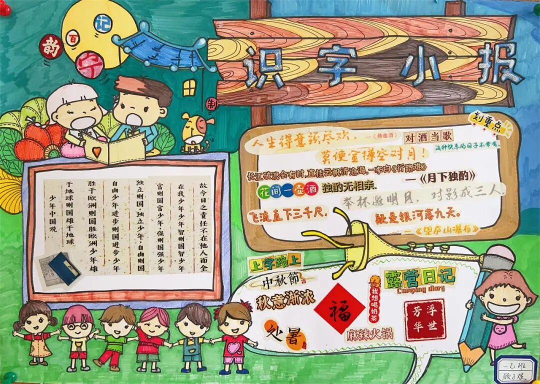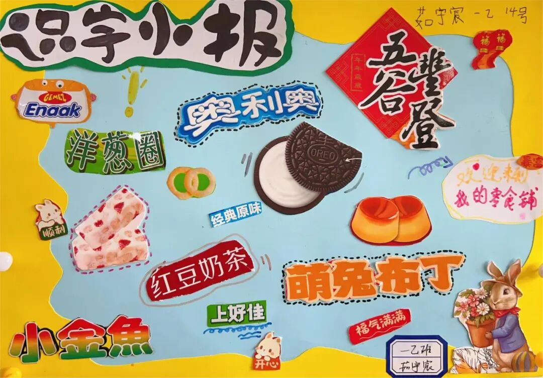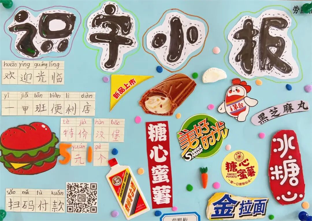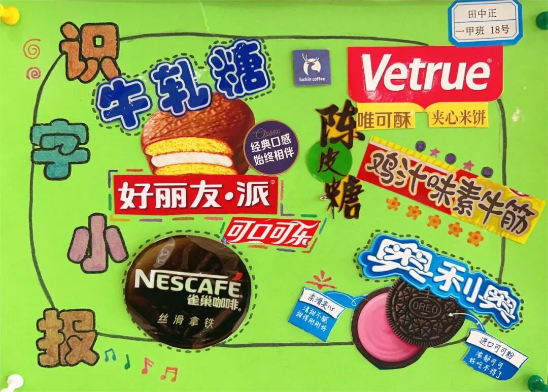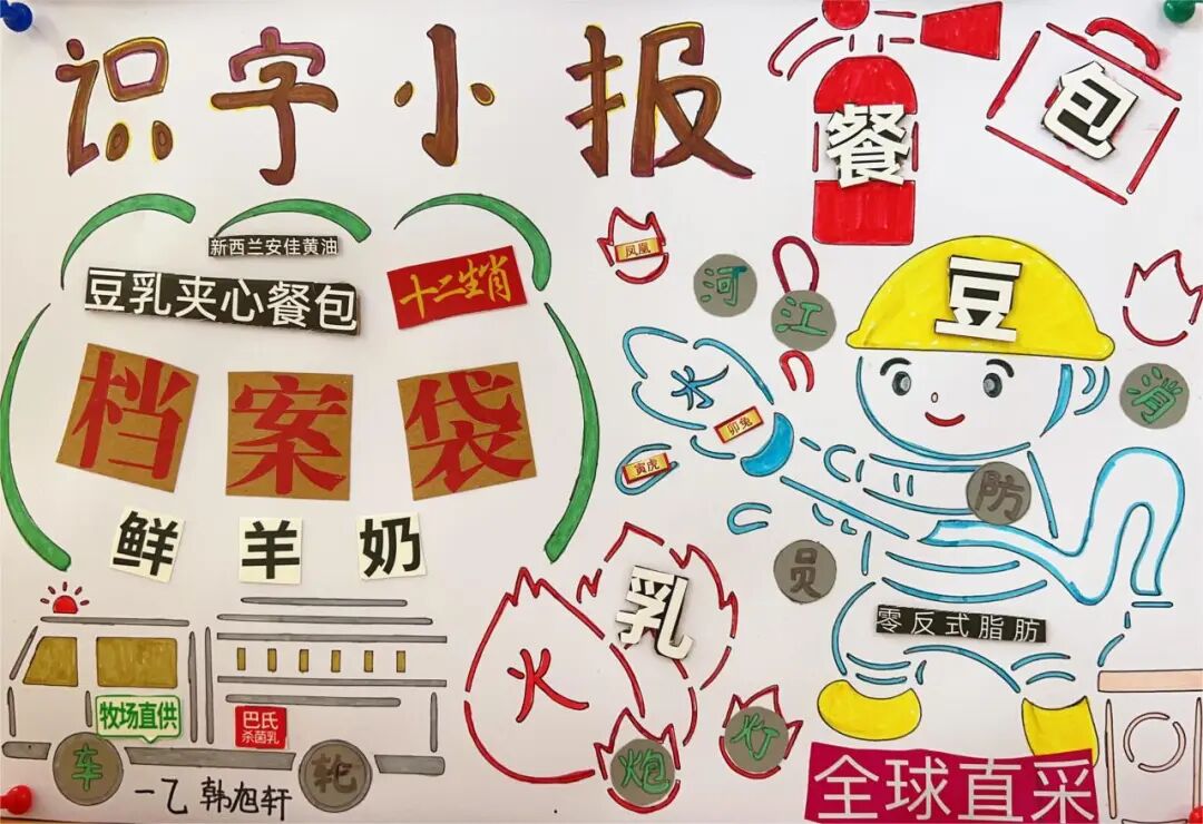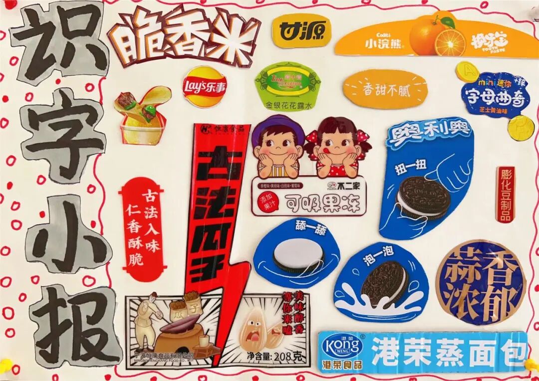 一张包装纸,一本图画书,一个零食盒……这些可都是识字的好材料!生活中随处可见的物品上的汉字,都在不经意间被孩子的细心所捕捉。将这些包装上认识的生字剪下来,贴一贴,画一画,就变成了不一样的识字小报图。孩子们制作的识字小报图文并茂,内容丰富,学习就在身边哦!