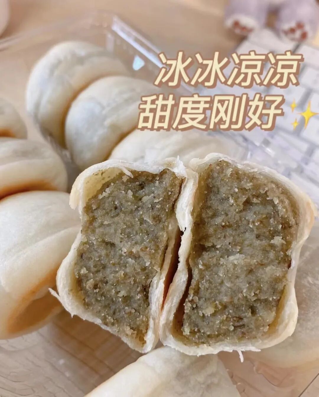 市面上大多饼类馅料都是市场上加工好的,现成的馅料。而这款不同,从原材料开始,选材要用好的,自己连夜泡发搅拌。第一口,不仅是馅料特别惊艳,更更重要的是那层冰皮,确确实实是我吃过好的皮之一。冰冰凉凉的特别适合夏天,一点也不腻。
