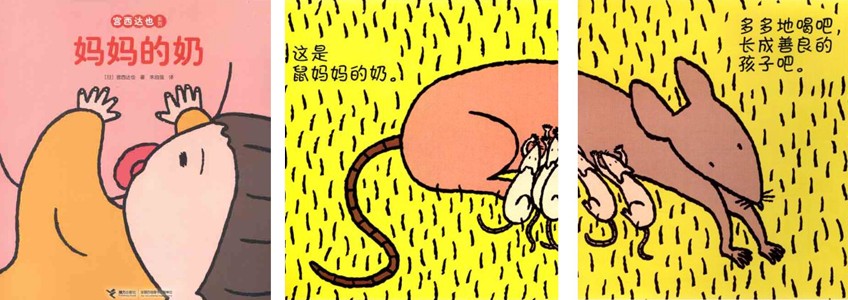 我也有类似的经历,比如我翻译过一本日本图画书,叫《妈妈的奶》,其实应该是“妈妈的奶头”,但有的人觉得这样不合适,给孩子讲的时候会脸红,不好意思说出口。这又是我说的“不洁的观念”在作怪!对孩子来说,妈妈的奶头、妈妈的乳房,是一件很美好、很纯洁的事情。
