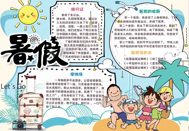 2、暑假来临了,这是学生们最期待的,这些时间完全是属于他们的,可是一件事情不能让他们痛痛快快地玩,那就是暑假作业。