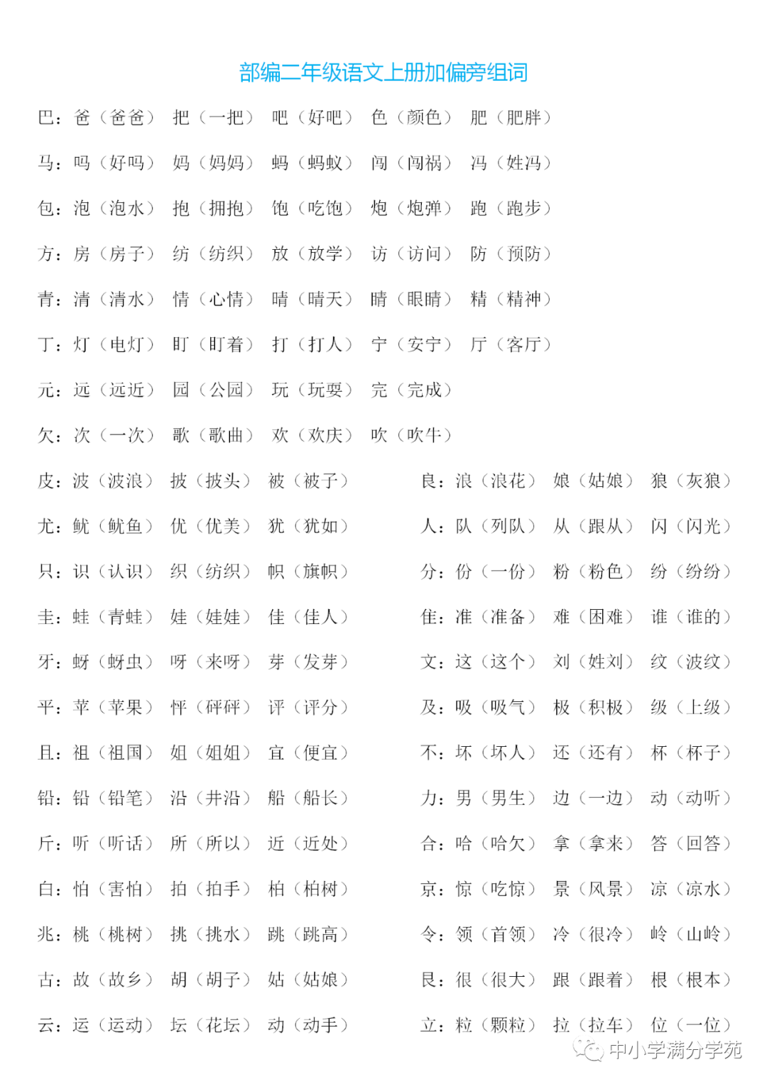 部编二年级语文上册:《加偏旁-变新字-组词》,看一遍,全掌握!