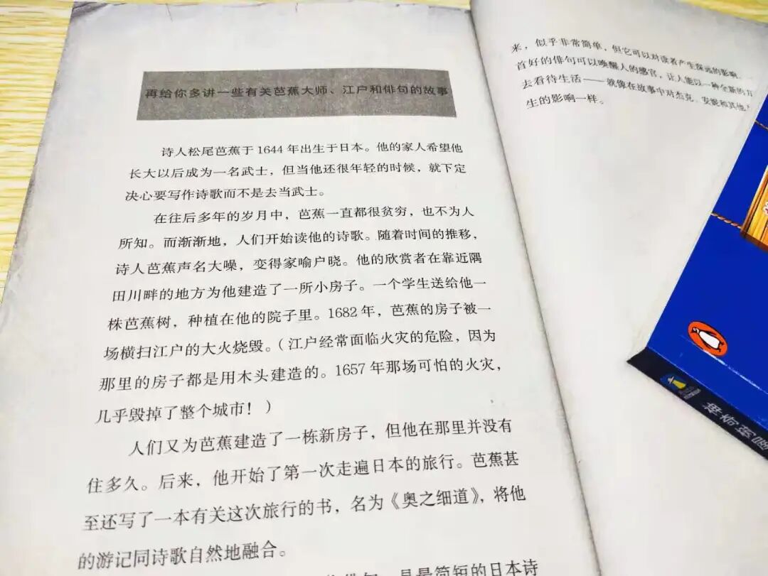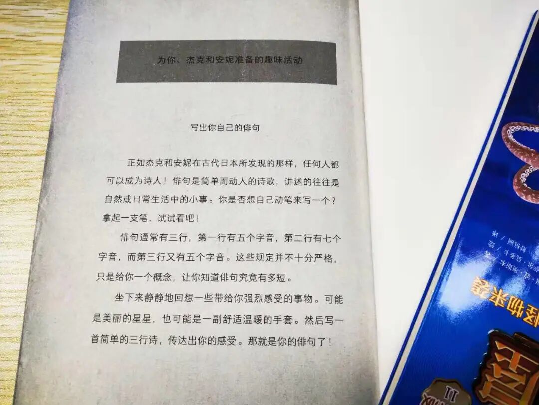 比如在《神奇树屋·晨曦中的云龙》中,故事的最后几页就介绍了书中主要人物——芭蕉大师、江户和俳句的故事。