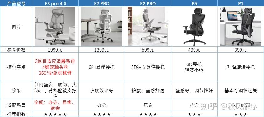 在拯救腰这块,人体工学椅还是牛! 久坐党基本避免不了腰椎、脊椎有问题,轻则僵硬,重则酸痛、咔咔作响。人体工学椅则可以通过多部位的支撑、多角度的调节,减轻久坐压力,撑腰护腰、让身体处于舒适状态。 我之前在测评这类产品的时候,黑白调的出现率是最高的,基本上粉丝都会提到它家产品。我对黑白调也有所研究: 行业地位很高:是《人体工学椅》团体标准第一起草单位,算是人体工学椅的开创者。 技术够硬:有100+人的研发设计团队,300+项专利技术,各条产品线都有自己的代表技术,不做千篇一律的技术革新。 荣誉实证:获伦敦设计大奖、美国BIFMA标准全椅测试,连续8年行业销冠。 综上,黑白调的实力还是很出色的,我当时服务的客户,有90%最终会选择黑白调人体工学椅,好评率也很高。 它家热门款还是很多的,今天我就给大家综合对比一下:E3 pro 4代、E2 PRO、P2 PRO、P5、P1,价位不一,大家可以参考一下: 测评产品较多,篇幅较长,赶时间的朋友可优先考虑: 这款的撑腰性能是本次测评中最强的。 独特的鲁班调节技术:3区自适应追腰系统第一次把将腰托分区,让其能自适应贴合腰部,前倾、后仰,腰部都能得到支撑,不悬空。4维双轴颈枕,上下、前后、旋转多方位支撑头部,还有360°全能机械臂放松手臂。从早坐到晚,身上都很舒坦,真正久坐不累! Auto重力感应底盘,往后一趟就可调节,不费事。Air呼吸抗衰网布,回弹强,还透气,夏天不闷汗。 现在新品上市优惠力度大,有需要的闭眼冲! 京东优惠链接: 天猫优惠链接: 追求性价比的朋友可以看这款。 有3D独立大腰靠,瘫坐、正坐,腰部都有腰靠紧紧贴合,支撑度蛮好的,软硬刚好。135°后仰,上班午休可以直接当躺椅用。还有特别的龙纹特网坐垫,自带曲线,包裹臀部,同时微孔设计,也能解决出汗问题,夏天久坐依然干爽。 折后价500+,上班族可以直接入! 这四款产品的相关参数和适用场景我已经给大家拉出来了,可以直观对比: 三、 黑白调产品系列测评 对腰椎、脊椎有强烈支撑需求的,黑白调这款新品一定适合。 它最大的亮点就是用了鲁班调节技术,将自动、全方位牢牢支撑做到了极致。 整个系统分为腰部、颈部、扶手3大部分: ● 3区自适应追腰系统 我之前在很多商家那里都看到过“自适应”,但体验过就知道,它们只能在上下、前后中择其一,只有正经端坐时,腰部能被撑住。 但黑白调这款不同,它有首创的3区自适应追腰系统,是目前行业内唯一一个把腰托分为3块的椅子。 左右两侧区域会包裹住两侧肌肉,将腰椎保持在正常的曲线形态;中间的主体腰托还是“浮翼”结构,负责旋转调节适应空间,根据、胖瘦体型、坐姿变换,自动贴合腰椎。 一整个自适应追腰系统,还能上下、前后、左右、旋转、滑动全方位自适应。 甭管是胖或瘦,正坐、后仰、前倾,腰部都能被被牢牢包裹,避免腰部悬空。我有了这款人体工学椅之后,腰椎疼痛的老毛病明显轻了很多,现在都不嘎嘎乱响了。 ● 4维双轴颈枕 支持上下升降4.5cm+前后调节5.5cm+旋转70°,这个适配范围、可调维度都是市面上极少见的,可以大大提升颈椎舒适度。 我后仰/后仰的时候,它可以通过调节转轴,让颈枕靠后,贴合自然状态下的颈椎,放松整个肌肉。对长期在电脑前办公、打游戏的人群很友好。 ● 不同于只能调节高低的普通扶手,它可以做到旋转20°、7cm升降、翻折20°、4.5cm2前后调节、40°倾仰联动。也就是说可以根据身宽、手臂长短、坐姿习惯,将扶手精确调整到舒适支撑位,何止手臂,整个肩颈都可以放松。 椅子最亮眼的三个位置,分别对应人体最需要支撑的三个部位,支撑效果自然水涨船高。 除此之外,它在调节方面也很优秀。不仅支持140°后仰调节,还有Auto重力感应底盘,往后用点力,就能直接调节,轻松不费事。 而且椅子还很舒适透气,Air呼吸抗衰网布,既有保留了网布的透气、长寿命,又增加了抗紫外线、抗UV特性,久坐屁股不闷汗。 椅子的安全性也很可靠。SGS四级气压杆,BFIMA等专业测试都通过了,还有金属五爪承重,稳固牢靠。 总的来说,黑白调这款E3 pro 4代表现很突出,1K+预算能买到这样的椅子,舒适是赚到了。久坐党完全可以闭眼入。 如果想买把人体工学椅在办公室,上班期间减轻自己的腰椎痛苦,可以看看这款,价格稍低,但支撑性能也很不错。 它的核心优势也在于腰托,但和上一款稍有不同。6向悬臂腰托,是从全面性着手,腰托很大,有效支撑面积是同价位椅子的1.4倍,以此分担腰部力量。 而且腰托还有个悬浮设计,有个主轴定点支撑,保持脊椎处于健康生理曲线。多维悬臂调节,腰托兼具上下、前后、旋转10°调节,适应角度够用。 总体护腰效果还是好的,体重大小、高矮胖瘦都可以找到自己满意的坐姿状态。 此外,它的360°全能机械臂也能放松手臂。除了基本的升降、前后调节,它还可以做到360°旋转机械臂,并且能翻折20°,灵活度优于大部分人体工学椅。打字,玩手机、午休,手都有舒适区放置。 3D环抱大头枕,可以做到10cm上下升降,60°上下旋转,4cm前后移动,各种坐姿,颈部都能被牢牢支撑。 还有,它也搭载了重力感应底盘,会根据不同体重自动调节后仰角度并锁定,不用弯腰手动调节。 总之,黑白调这款E2 PRO综合实力过关,坐着可以随时撑腰护腰,活动价999,还是很划算的。 如果使用的场景比较多,追求全面坐感体验的,建议看P2 PRO,百元价位,全面性不输千元档。 