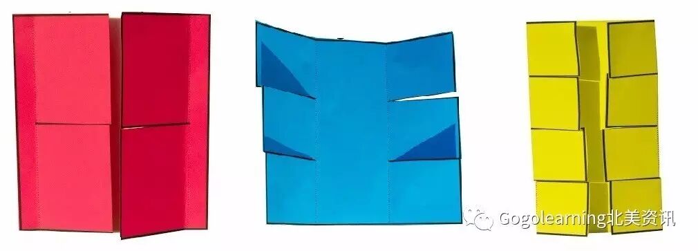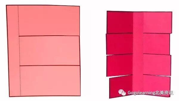 翻翻书是最为常见的折叠方式,竖轴的地方可以作为总的标题区,对其他剪开的部分进行分类整理。可以一边翻看,也可以两边翻看。