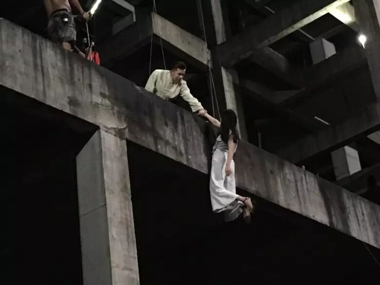 但是为了拍摄需要,要吊到三层楼高