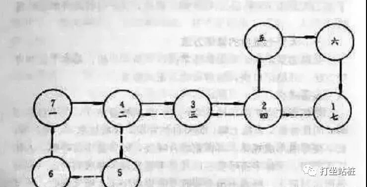 随后,默运五行,最后再归?于下田。调整人体宇宙的呼吸,等自身形成一体时,踏步入七星。七星阵如图所示。