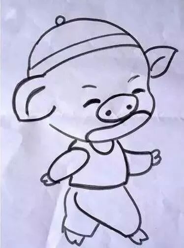 首先画出小猪的图案,可以先在画纸上打个草稿哦~