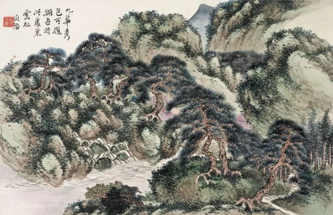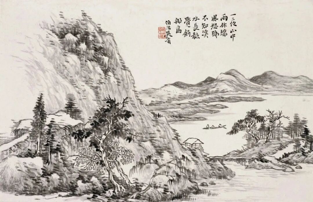 吴伯滔能诗、工书、善画,源于其早年崇“元四家”,慕“明四家”,学董其昌,习“清四王”,兼蓄并收,少年即现才华。山水花卉皆卓,不落凡径;作山水取径高古,笔墨苍秀沉郁,气韵清新简约,一洗时风枯槁娟媚甜俗之习。