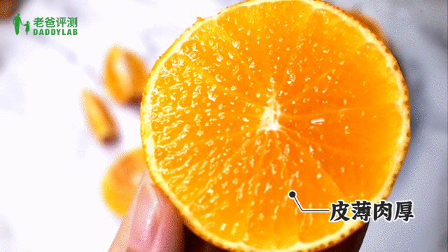 不像其他品种橙子的皮紧,需要借助工具才能剥开,它皮薄且软,继承了橘子的好剥,丝毫不费劲!入口的橙子汁多且甜,果肉脆嫩,咬一口,汁水就漫了满口,仿佛不是在吃橙子,而是在喝橙汁!