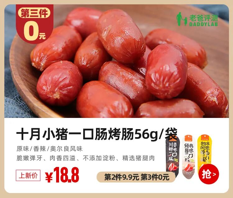 这款一口肠,办公室里的小伙伴都非常喜欢吃,那满满一箱的样品不到两天就被大家吃空了,这无额外添加淀粉的肉肠口感,真的值得大家尝一尝。