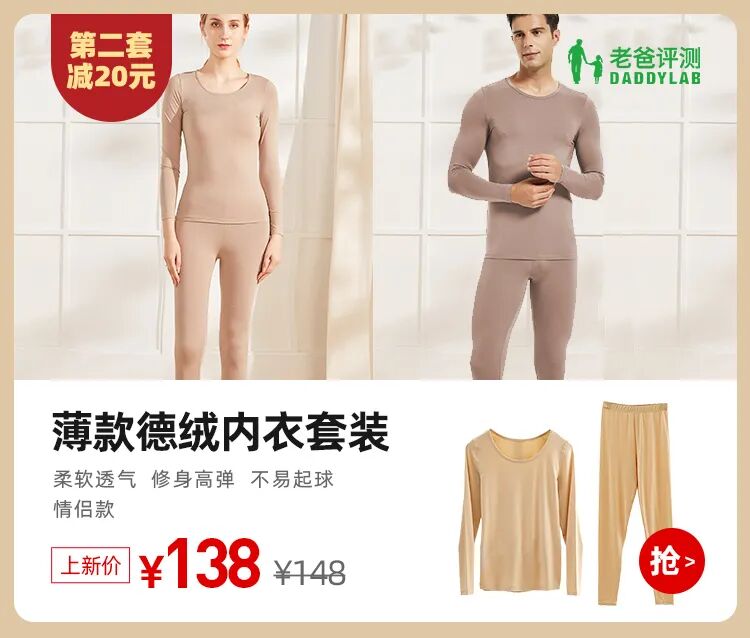 男女款都有,上新价一套138,第二套减20元,给自己和对象一人来一套吧,两套只要256,可以现在先加入购物车,11.11买领券可以再减25,~值!