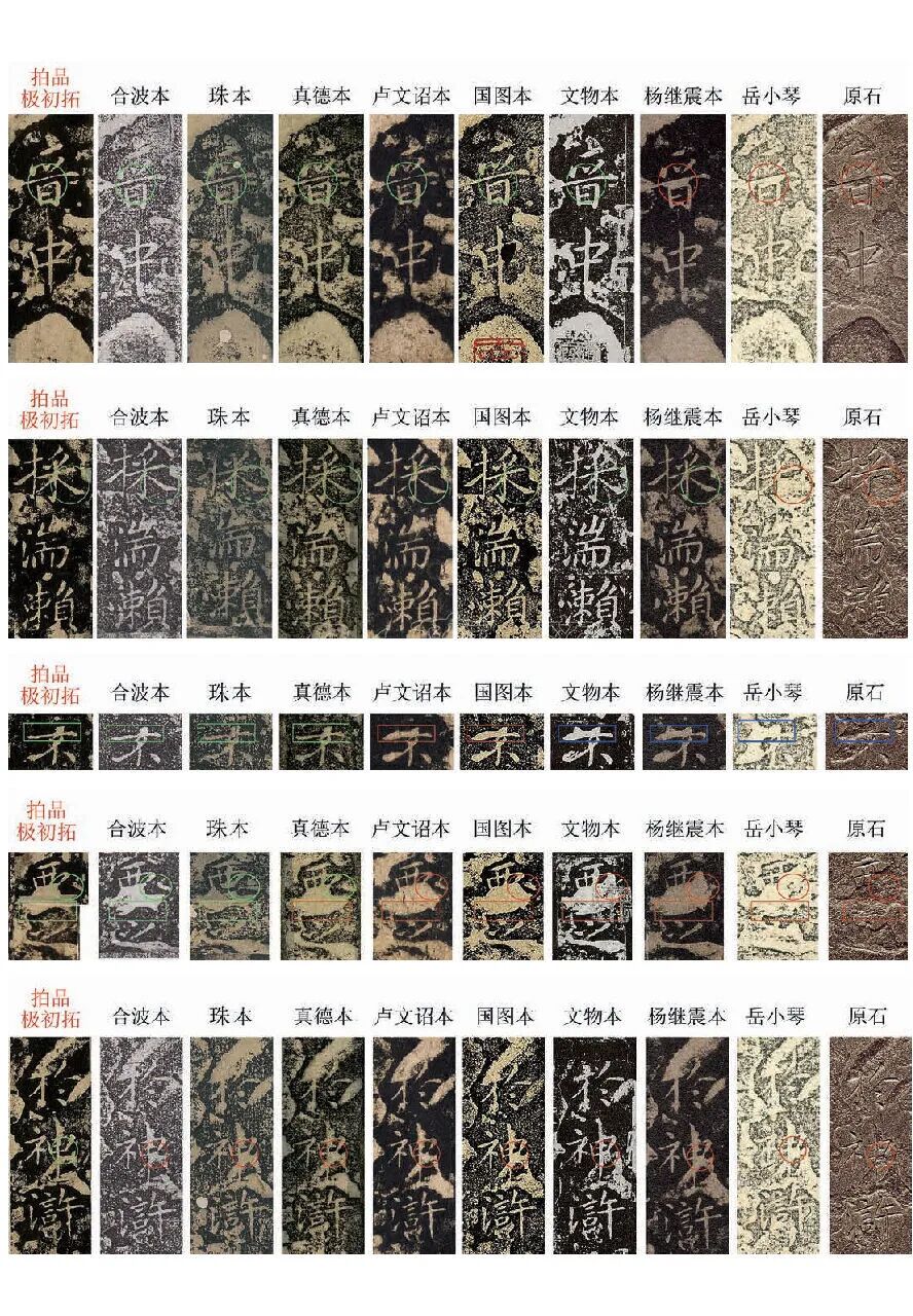 传世拓本,以晋字未损本为最。如故宫陈衡玉本,上图任觉盦本,国图吴云本,文物出版社印本。晋字未损本中,又有“不”字未损本,已属凤毛麟角。今此本,不独“晋”字未损,“不”字完好,另有“要之”的“之”字圆顶,还有有怅、神、飞、玉佩、等诸多区别,早于于现今次旧之本。