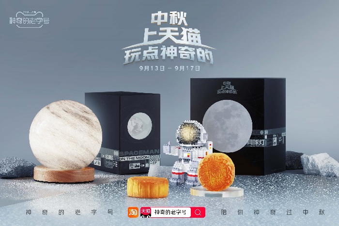 #神奇的老字号#是天猫专为焕新中华老字号推出的专属营销IP,于中秋推出“老字号陪你登月神奇过中秋”的主题传播,突破刻板印象拉满反差萌,扩列年轻族群,上线了以艺人麦长青(B站梁非凡)扮演老顽童带领老字号登月过中秋的三支病毒故事:《冷海篇》、《缥缈篇》、《虚空篇》和系列social poster。相关话题引爆全网,其中#月饼算是让南方人玩明白了#霸榜TOP4,#神奇的老字号#、#中秋天猫老会玩了#、#还是爷爷奶奶会玩#共计话题曝光7.4亿,互动50万+,承接话题热度推出此款月饼礼盒。有月饼、微积木宇航员、月球灯,全方位体验有玩有吃有趣的中秋。用户参与抽奖并积极返图。