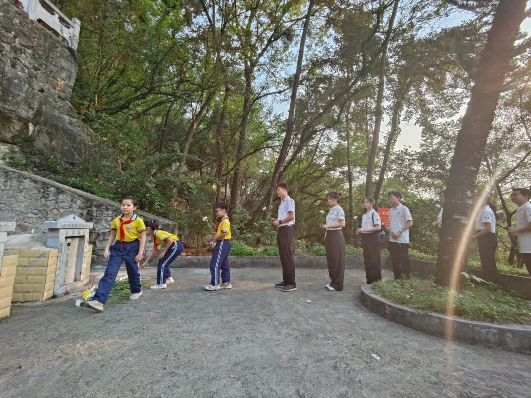 全体人员在烈士墓前庄严肃立,齐唱国歌,敬献花圈,默哀致敬,表达对革命先辈的崇高敬意和无限哀思。少先队员向烈士献上了鲜花,瞻仰烈士陵园碑文,学习烈士的伟大革命精神。学生代表在烈士墓前发言,励志向革命烈士学习,珍惜幸福生活,奋发图强,争做新时代好少年。