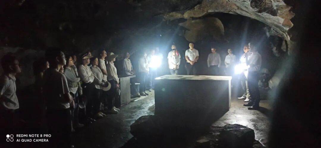 随后,全体党员干部前往下坳镇光隆革命岩,镇党委书记带领党员面向鲜红的党旗,重温入党誓词,坚定入党初心。在光隆村委讲解员的介绍下,党员干部拾级而上,参观革命先烈曾战斗过的岩洞,了解该地的革命历史。在岩洞中,镇党委书记给全体党员干部上了一堂简短生动的党课,激励党员干部居安思危,不断奋进。