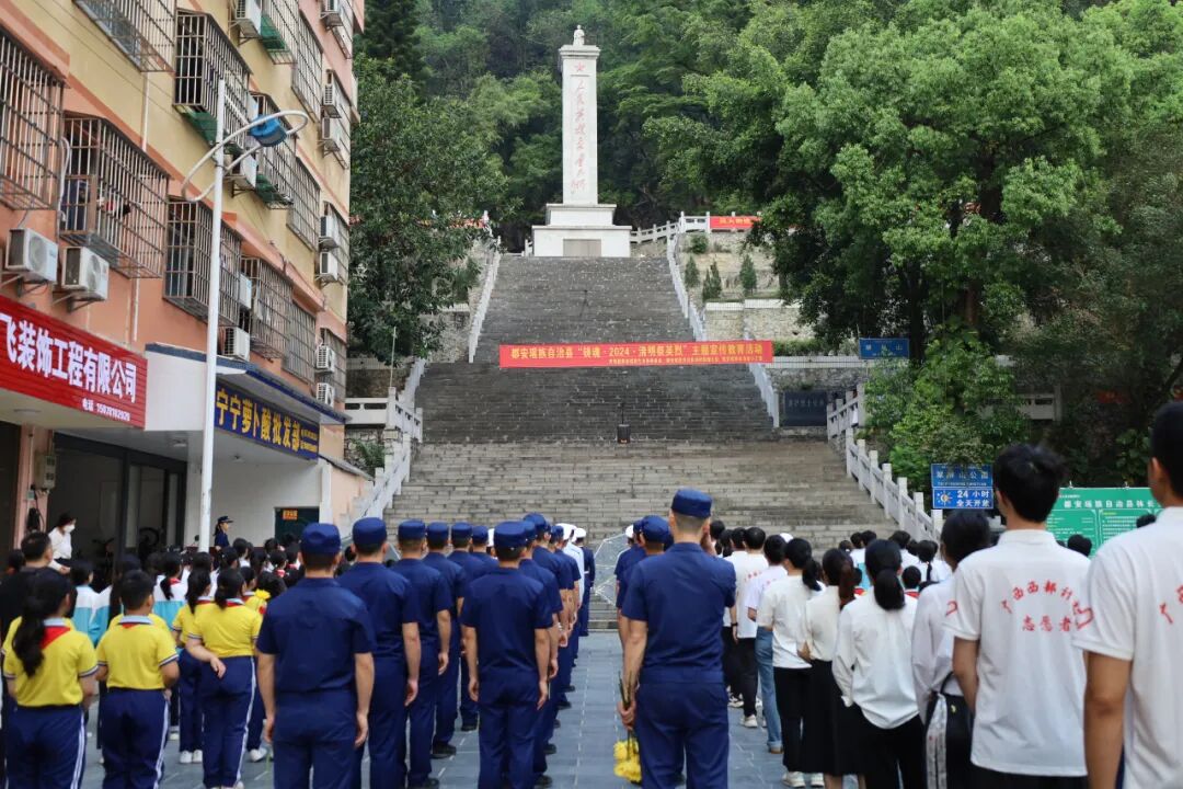 随后,都安团县委和自治县消防救援大队领导班子到纪念碑前整理花圈缎带,并向革命烈士行三鞠躬礼。参加活动人员手持鲜花,怀着崇敬的心情,缓步前行,相继绕碑瞻仰,依次敬献鲜花,以表达对先烈们的缅怀之情。(邓卓凯 蒋芳婷)