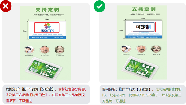 14、素材中以任何形式涉及到品牌描述,均需提供商标资质;