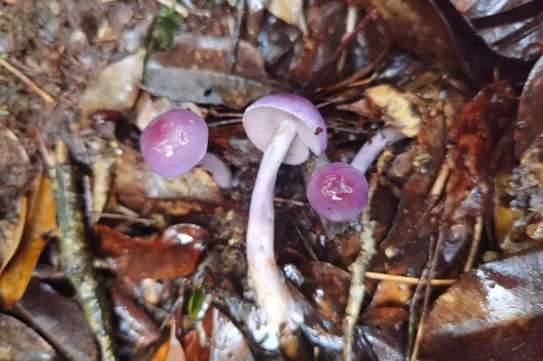 近日,百山祖国家公园生物多样性大型真菌纪录片拍摄团队在浙江丽水景宁英川镇凤凰寨村企岩水库附近发现三株近蓝紫丝膜菌,为景宁菌类增添了新成员。这是去年在庆元发现的全球新物种,景宁属第二个发现此类真菌的区域。