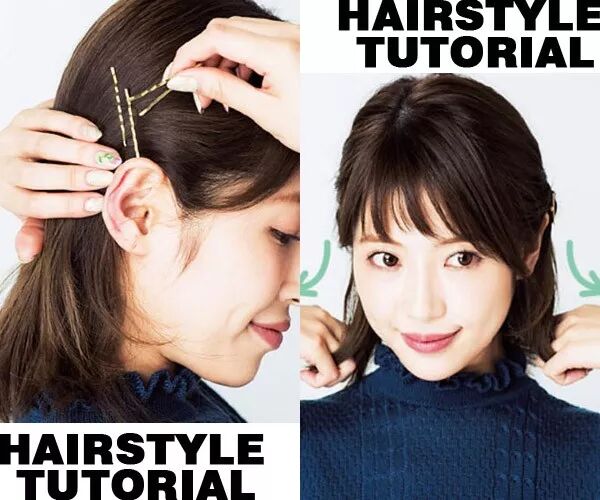 step 2:右侧刘海后头发集中到耳后,也是用金色小发卡固定。