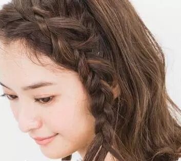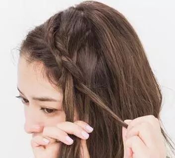 step3:然后取出前额的刘海以叠加的方式开始编发,图中是取的左边刘海,方向根据自己的喜好来编就行。