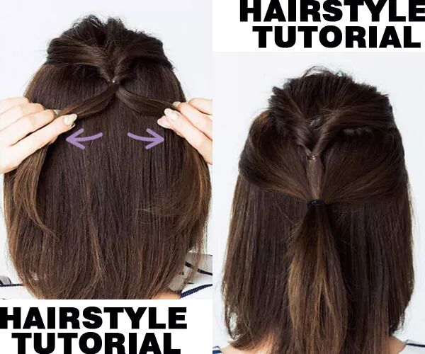 step 2:翻转头发分成两束,往左右拉紧。