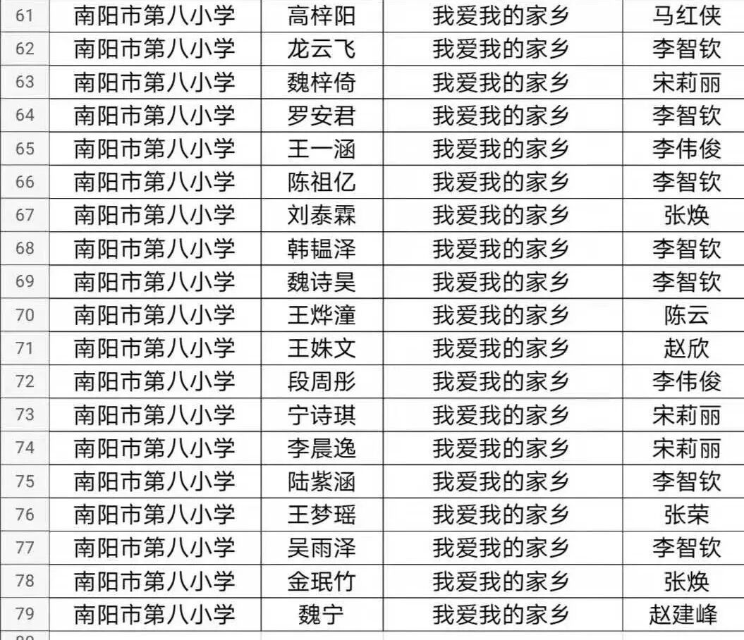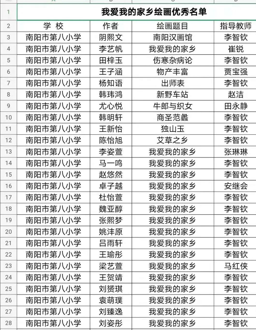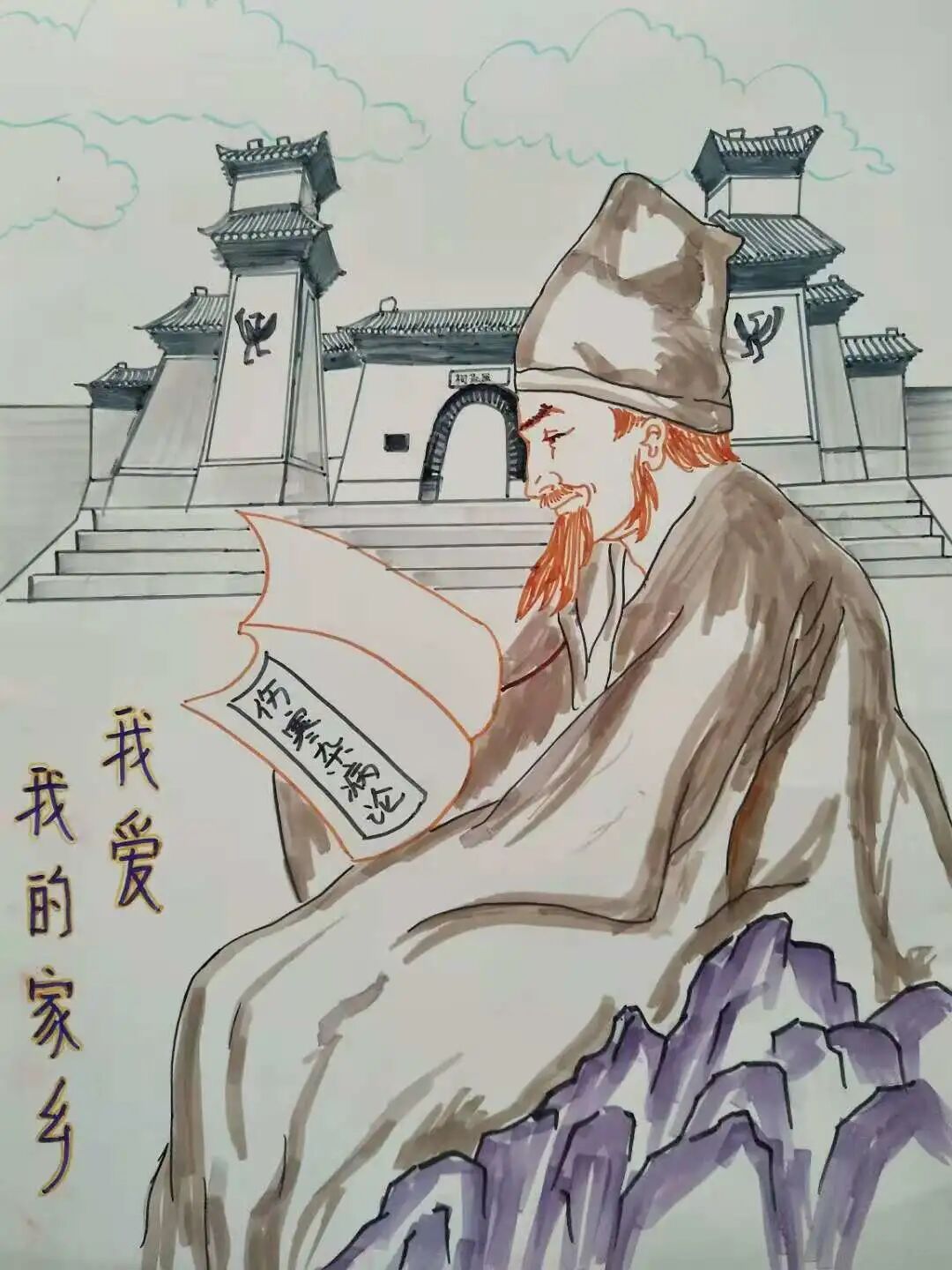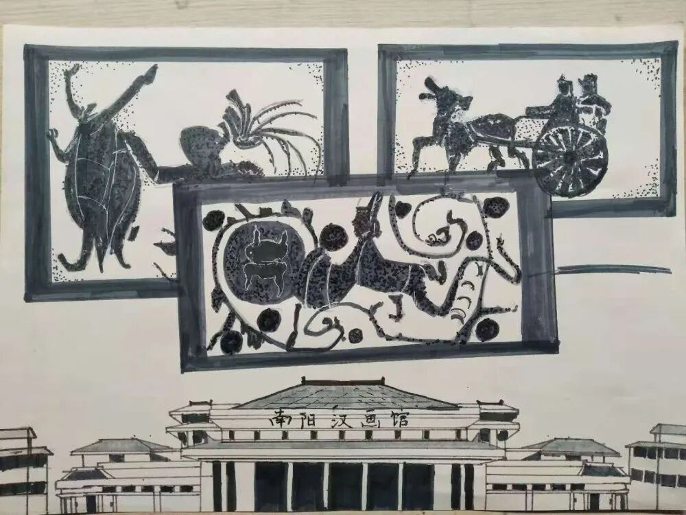 在南阳荣获全国文明城市之际,由南阳市图书馆举办的“我爱我的家乡”绘画比赛在我们南阳市第八小学校如火如荼的拉开了序幕。 全校上千名学生积极参与,上交作品400多幅。小作者们从不同的视角观察家乡,匠心独运,巧手挥洒,一幅幅作品应运而生,展现了家乡南阳的美,表达了自己的心声。学校成立了评委会,在整个评审过程中,各位老师秉承公平、公正、公开的原则,在全校四百多幅作品中评选出十幅一等奖,二十幅二等奖,三十幅三等奖,五十幅优秀奖。祝贺获得奖项的学生们!让我们一饱眼福吧! — 优秀作品展 — 杨知雨同学家在卧龙岗居住,画了《出师表》,画面中闻名遐迩的诸葛茅庐,羽扇纶巾,诸葛草庐古朴典雅,汹涌的波涛掀起船头,林立的草把子上满载利箭,“出师表”画卷从天而降,智圣诸葛亮的鞠躬尽瘁死而后已的精神激荡人心。整幅作品,惟妙惟肖的人物形象,错落有致的用心构图,古朴素雅的色彩搭配,呈现出了南阳的人文美。 陈怡旭同学家在蒲山,深知家乡盛产艾草,提交在作品是《艾草之乡在南阳》。作品用高如小树的艾草,地里欢快忙碌的家人,艾草精加工的各种产品,显现了家乡欣欣向荣的景象。 王子涵同学提交的作品是《物产丰富》。他画的是家乡生产的玉米、红薯、花生,戴着草帽的累得满脸通红的小女孩,捧着一把刚刚摘下的花生笑逐颜开,身后有茂密的玉米地和堆积如山的紫皮红薯,淋漓尽致地表达了小作者对家乡南阳的热爱之情。 南阳市的汉代画像砖是中华民族文化的经典部分,它结系着汉文化,深蕴着古人类至汉代的情结,展示了汉代特有的艺术表现形式,体现了汉代文学艺术与理性思维的融贯,尤其是画像石(砖)中的特殊视觉效应。阴熙文同学就在自己的作品里不仅把南阳最著名的几幅画像石拓片展现出来,还把中国第一座专门收藏、陈列、研究汉代画像石刻的艺术博物馆,中国建馆历史最早、规模最大、藏品数量最多的一座汉代艺术博物馆——南阳汉画馆画出来了,严谨的构图,莫兰迪灰色系的配色让篇幅不大的画面磅礴大气。 一等奖获得者 韩明轩《商圣范蠡》 阴熙文《南阳汉画馆》 李艺帆《我爱我的家乡》 杨知雨《出师表》 韩玮鸿《新野车站》 王新怡《独山玉》 陈怡旭《艾草之乡在南阳》 田梓玉《伤寒杂病论》 王子涵《物产丰富》 尤心悦《牛郎与织女》 优秀作品名单 南阳,物华天宝、人杰地灵;南阳,人才荟萃、风景秀丽。南阳的孩子爱南阳,巧手匠心绘家乡。南阳人同心筑梦谱华章,奋楫扬帆再起航。 -END- — 厚德博学 笃行致远 — 策划:贾宝强 分管:办公室 供稿:李智钦![]()