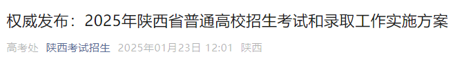 《2025年陕西省普通高校招生考试 陕西新高考 根据《国务院关于深化考试招生制度改革的实施意见》(国发〔2014〕35号)和《陕西省人民政府关于印发深化普通高等学校考试招生综合改革实施方案的通知》(陕政发〔2022〕14号)精神以及教育部有关规定,为确保我省2025年高考综合改革平稳落地,特制定本方案。 来源:陕西考试招生