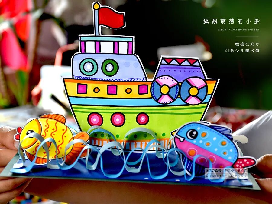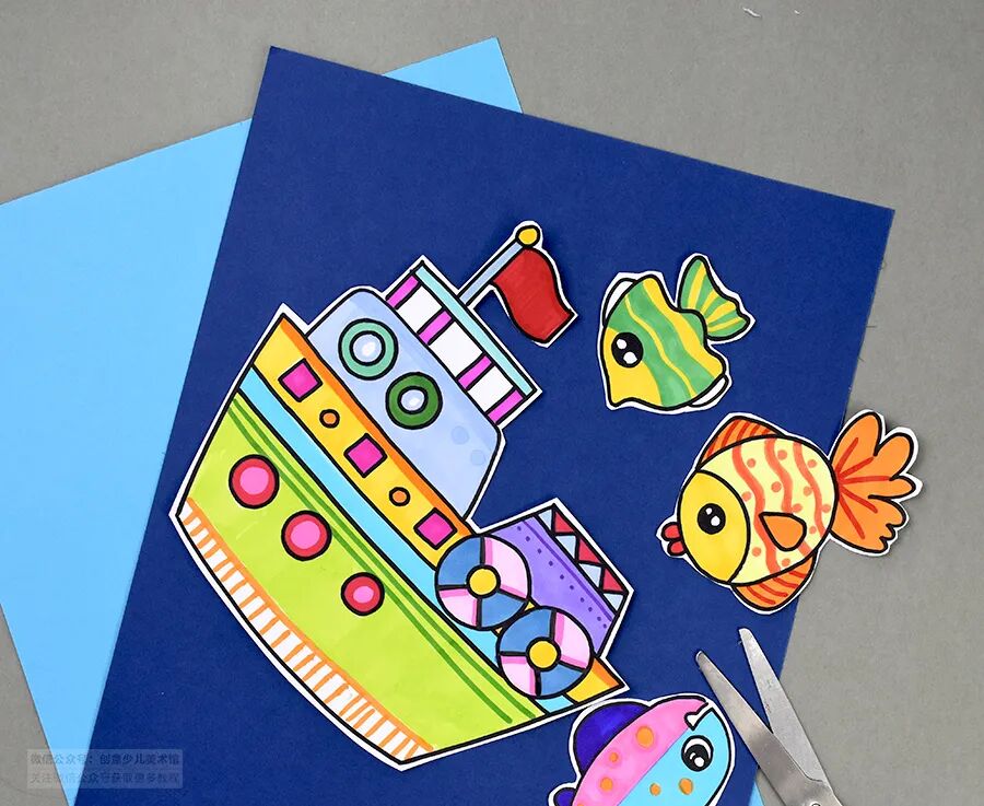 并为船和小鱼搭配鲜艳美丽的颜色