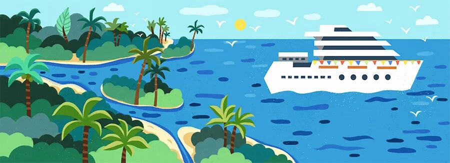 1.欣赏轮船的图片素材,根据喜好设计出一艘漂亮的轮船,并运用丰富的色彩和花纹对轮船进行装饰。