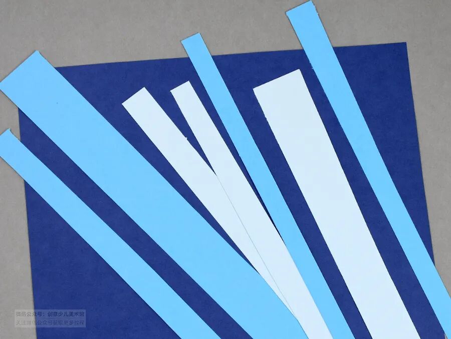 将蓝色的卡纸剪成长条形