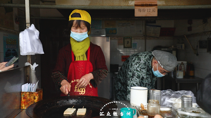 从小推车做到店面,阿婆的蛋包糕店就开在学校附近,很多人都是从小吃到大的。阿婆依旧戴着标志性的小黄帽,一眼就能认出来。阿婆说,现在来吃的客人,从哪儿赶过来的都有,甚至还有从外省过来的。小店的门口,也经常会停下来一些豪车。店铺现在基本都是在下午时间开门,每天早上开始忙碌准备食材,用的猪油、肉沫、肉串,都是自家制作的。由于生意太好,小摊上三个人分工合作,开展了“流水线”的工作。点单后,会先打上一杯蛋液备用。蛋液内的加料很丰富,有肉沫、火腿、咸菜……据说每天能用掉好几百来个鸡蛋。