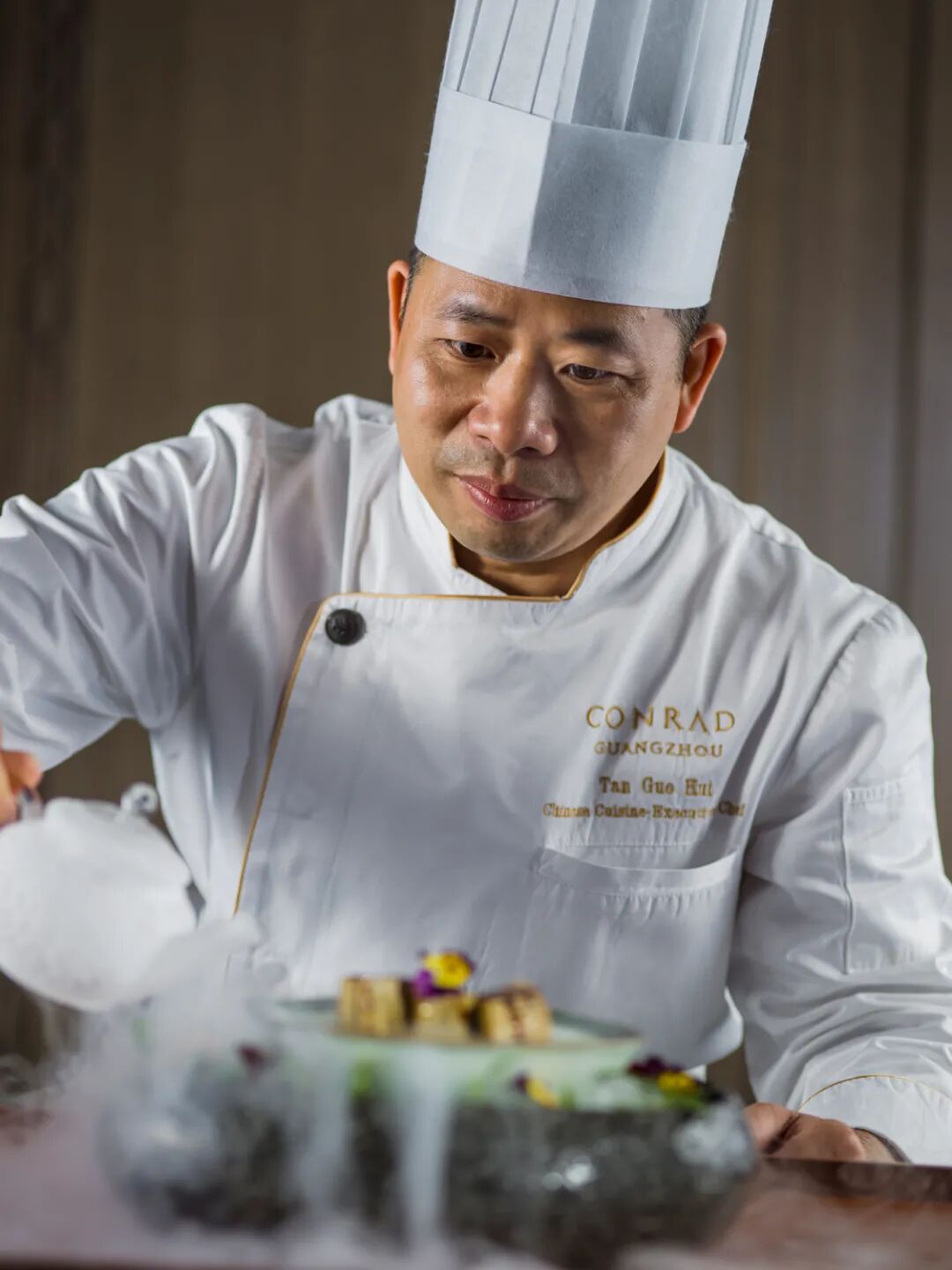 点击蓝字关注我们 ▲烹饪艺术家谭国辉 谭国辉 广州“168 凡精致粤菜”主理人、中国烹饪大师、广东省劳动模范、极客厨房创始人、广东南粤技术能手、广州市突出贡献技术能手、中式烹调高级技师、广州市五星级酒店总厨交流协会常务副会长兼监事长。 精彩语录: 不要以为你有几道菜很厉害,其实世界很大。 我不怕失败,但我怕原地踏步。 少年得志,20岁统领厨房 谭国辉16岁进入餐饮行业,一干就是三十几年,人送雅号“知食份子”。他少年得志,20岁就管理100多人的团队。如今,作为分子厨艺的领军人物之一,他依然在这行孜孜不倦地学习,他开设了谭国辉创新粤菜工作室,为粤菜的传承点燃了薪薪之火。可他依然谦虚地说:“做餐饮,要用心,只有用心,才能成就粤菜的大美。” 16岁那年,他进入广州国泰宾馆,没有人脉,一张白纸,全靠着“学习”和“勤奋”。此时刚好是1983年,改革不久,万元户开始流行,国泰宾馆生意火爆。谭国辉勤快,深得师傅喜欢,他拿着算不菲的收入。4年后,20岁的他升任主管,带领着100多人的团队,可谓少年得志。工作期间由于工作表现突出,他被外派到香港培训学习先进经验,在当时,这种机会是非常难得的。谭国辉也将其视为他人生的“重要转折点”——学习烹调永无止境,厨师的自我提升不仅是技艺的进步,更需要视野的开阔。后来,他在广州文化假日酒店担任主厨一职,西方餐饮文化开始影响他的职业生涯,并且接触到国际酒店先进的管理和制度,从而使厨艺和厨政管理方面积累了相当丰富的经验。 从厨三十载,学习在路上 在餐饮朋友圈,谭国辉尽人皆知。入行8年,他就进入总厨的管理行列。从餐桌到管理,他一步一个脚印,从不言弃,也从不言辛苦。从厨三十几年,他见证了中国餐饮业的蓬勃发展,也点燃了餐饮文化融合发展的盛宴。他说:“我热爱烹饪,就多走几步。”正因为他们的执着和热爱,才成就了今天的新派粤菜。30多年过去了,谭国辉身上的盛名与资历愈加愈多:2011年12月荣获广州市政府授予“广州市突出贡献技术能手”称号、2012年10月荣获中国烹饪协会授予“中华金厨奖”、2013年9月荣获第二届中华粤菜名厨金钻奖,多次担任国内乃至世界级重大烹饪比赛的评委……广州康莱德酒店中餐行政主厨的他,依然在寻求自我的突破,在粤菜的传承与创新上依然孜孜不倦。 把分子厨艺融入粤菜创新 就在大家都为他在业界所取得的成就点赞时,他没有为自己的取得的成绩沾沾自喜,已经开始思索如何突破自我、研究粤菜的传承与创新了。2009年第一次接触分子料理的时候,谭国辉被深深震撼到了,他第一次知道原来鱼子酱一样的东西,竟然可以在口中迸发出哈密瓜的清香;一道看似普通的煎蛋,切开后蛋黄居然是芒果,而蛋白却是奶酪或奶油。这种由食物外表的欺骗带来的惊喜,让当时的谭国辉十分着迷,那时他便意识到,这项科学烹饪在国内仍是空白,如果把这种技术运用到中餐或者粤菜,那将是一次重大的突破。之后,谭国辉便沉醉到分子料理的学习中,他开始在国外购买大量的分子料理书籍,那时候国外的书籍并没有中文版,谭国辉只能自己寻找翻译,慢慢摸索。每每听到有米其林的分子料理活动,他都会报名参加,并将学到的技术尝试运用到菜品中,每一次成功的尝试,都让谭国辉感到惊喜和骄傲。 在那时,并不是所有人都认同分子料理的,对于国人来说,这是非常新颖、奇怪的烹饪技法,很多厨师觉得分子料理并不适用于中餐,让“实验室的设备”进入厨房,更是让人无法接受。在众多质疑声下,谭国辉依然坚持自己的研究,面对大家的劝阻,谭国辉不置可否,“人们面对一些自己无法了解的事情,都会心生犹豫,但我想做第一个吃螃蟹的人,我不怕失败,但我怕原地踏步。”2009年,谭国辉和两位搭档何海晖、黄河创办了极客厨房,希望将自己所学到的分子料理技术教授给更多的厨师,现在极客厨房不仅每期学员爆满,在分子料理方面也影响重大 荔蓉香酥带子 4大制作要点 1.芋头一定要选粉质多且含水量较少的荔蒲芋头或者乐昌,其他粉质芋头也可,但以中秋前后的荔蒲槟榔芋头为最佳。如遇到粉质不好或者质地太韧的,可适当减少澄面的用量,同时加大熟猪油的用量。小个的毛芋头是不能使用的。 2.在芋头蒸熟后(一般需要30-40分钟),要趁热与熟的澄面混合搅拌,若凉了芋头内淀粉的粘性就会变差,并最终影响成形效果。澄面一定要是熟的,生的不行。 3.猪板油一般分三次加入。如果用搅拌机搅打,加入油脂后应以慢速搅拌,便于面团吸收油脂,过快的话只会使油脂浮于面团表面。 4.油炸的关键在于控制好油温。这里有个方法不妨试一下:取一小面团压扁后下油锅,如其立刻上浮且上色,则表明油温过高;其缓缓上浮且伴随着松散的颗粒,则表明油温过低;其迅速上浮后略微散开,则表明油温刚好。此时将生坯下锅(如量大的话需再升温),视其表面微微散开后无需急于升温,因此时正需形成“蜂巢”,如过于“散花”则升温定形,而后熄火炸透,最后再次升温逼出其内在含油量即可。 更多精彩内容请看《烹饪艺术家》杂志! 2022年《烹饪艺术家》 赶紧扫码抢购 2021年《烹饪艺术家》杂志 餐饮专业读本 1年12本,只要360元 东方美食30余年精心打造 长按以下二维码,自助订阅 (每月出刊,月月快递) 详情点击以下链接了解 8大亮点助你提升 2022年《烹饪艺术家》 礼