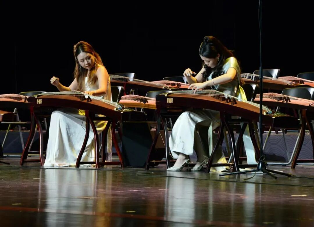 此外,筝合奏《福建板》展现了福建人在南洋的坚韧不拔和勇于拼搏的精神;筝二重奏《酒狂》引领听众进入晋代才子阮籍那复杂而深邃的内心世界;筝与钢琴《远清秋》则以其淡远的意境和忧思连绵的旋律,让人灵台如洗,澄澈清明。筝合奏《动感弹拨》充满了现代气息及火热激情,既有拉美流行音乐的韵律,又不失中国传统音乐的风味。筝合奏《行者》,则充分展现了丝绸之路上龟兹古国的异域风情。下半场,由筝合奏《西楚霸王》拉开序幕,该曲深情描绘了西楚霸王项羽的英雄气概以及他与虞姬之间荡气回肠的爱情故事;筝与钢琴《海之波澜》则表达作曲家对家乡的眷恋之情;筝合奏《柳京之舞》和筝四重奏《BLUE》则分别展现朝鲜民族的传统风格音调和爵士元素的独特魅力。