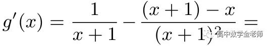 这个不等式的证明比较容易,只需构造函数f(x)=ex - x - 1(x ∈ R),由f′(x)=ex - 1 知,当x > 0时,f′(x)>0;当x <0 时,f′(x)<0.故当x=0 时,fmin(x)=f(0)=e0-0-1=0.即当x ∈R 时,f(0)≤f(x),也即ex-x-1 ≥0,故x+1 ≤ex(x ∈R),当且仅当x=0时,等号成立.