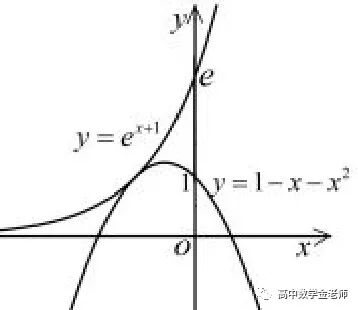 证明 要证明:当a ≥1 时,f(x)+e ≥0,即要证明只需证明:x2+x-1 ≥-ex+1.即证明:ex+1 ≥1-x-x2.由图23 可知,函数y=ex+1 的图像高于函数y =1-x-x2 的图像.显然命题成立.