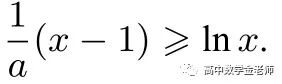 题8 解析 f(x)的定义域为(0,+∞).设g(x)=ax-a-ln x,则f(x)=xg(x).f(x)≥0 等价于g(x)≥0.即ax-a-ln x >0,即a(x-1)≥ln x.由变式(5)ln x ≤x-1得a=1.