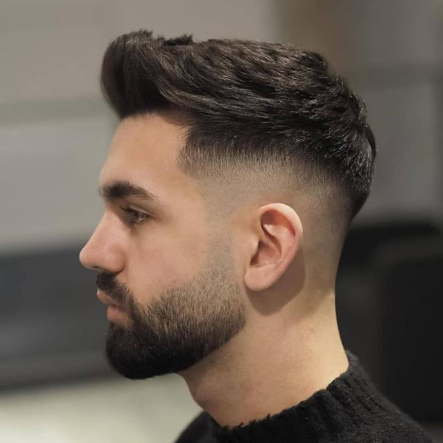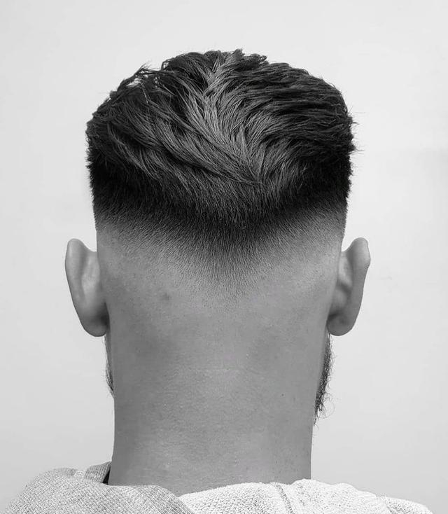 这款发型对发质有一定的要求,发丝不能太软,否则就会贴合在头皮上面,显得发型特别扁塌。不硬不软的头发最合适了,整个发型既不会太炸也不会太塌,外形的轮廓就显得特别好看。鬓边位置的头发,用剃刀剃出规则的发际线,看起来更加硬朗帅气。
