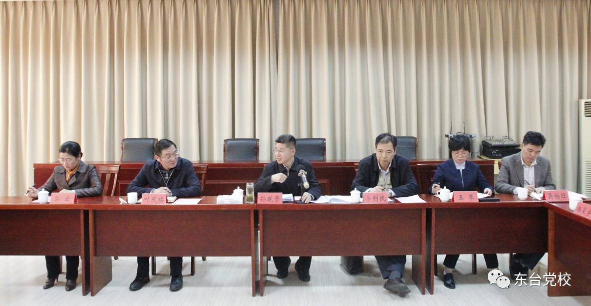 在调研座谈会上,市委副书记、党校校长许峰向孙乾贵一行介绍了东台市委切实落实办党校、管党校、建党校的主体责任情况以及东台市委党校学习、宣传、贯彻党的十九大精神的做法和设想,表示将把学习贯彻党的十九大精神作为当前和今后一个时期的首要政治任务,切实学懂弄通做实党的十九大精神。把党的十九大精神作为党校培训的主要内容和必修课,全面组织好党的十九大精神的教学、科研和宣讲工作,推动党的十九大精神进党校教材、进党校课堂、进学员头脑。市委干部教育培训领导小组部分成员单位负责同志和部分学员代表在座谈中充分肯定了近年来东台市委党校在教学科研、队伍建设等各方面的特色做法和亮点成效,并结合实际对上级党校干部教育培训工作提出合理化的意见建议。
