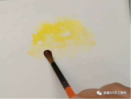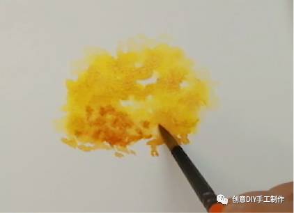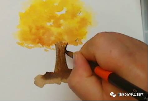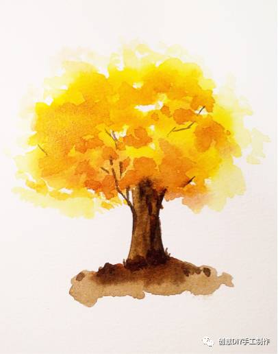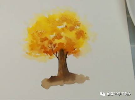 1.先用画笔沾上中黄色,再沾适量的水,画出树大概的轮廓,要注意要留一些空白在里面。