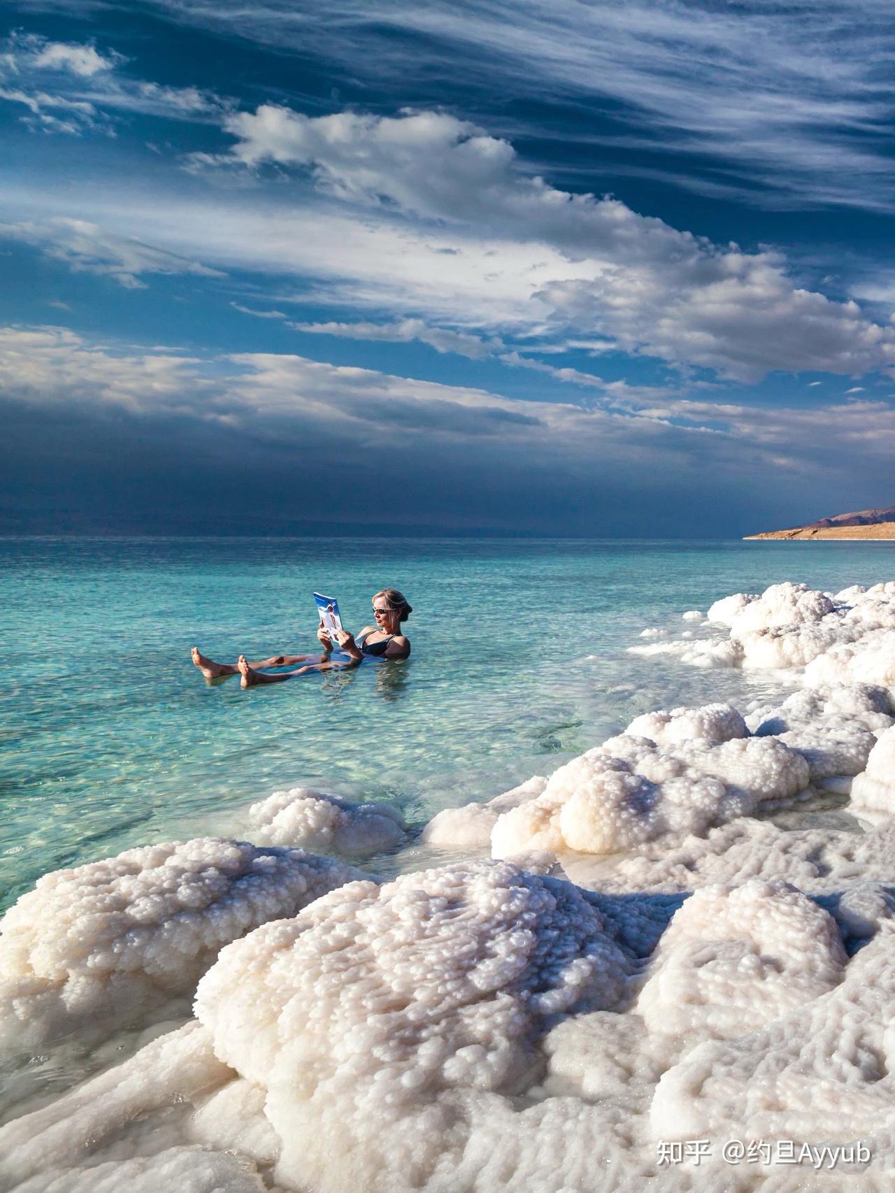 5??死海:漂浮圣地,由于其盐度是普通海水的8倍,所以人可以轻松漂浮在水面上。死海其实并不是海,而是一个咸水湖。简单体验一下就好,千万不要游泳,水进眼睛会很疼。