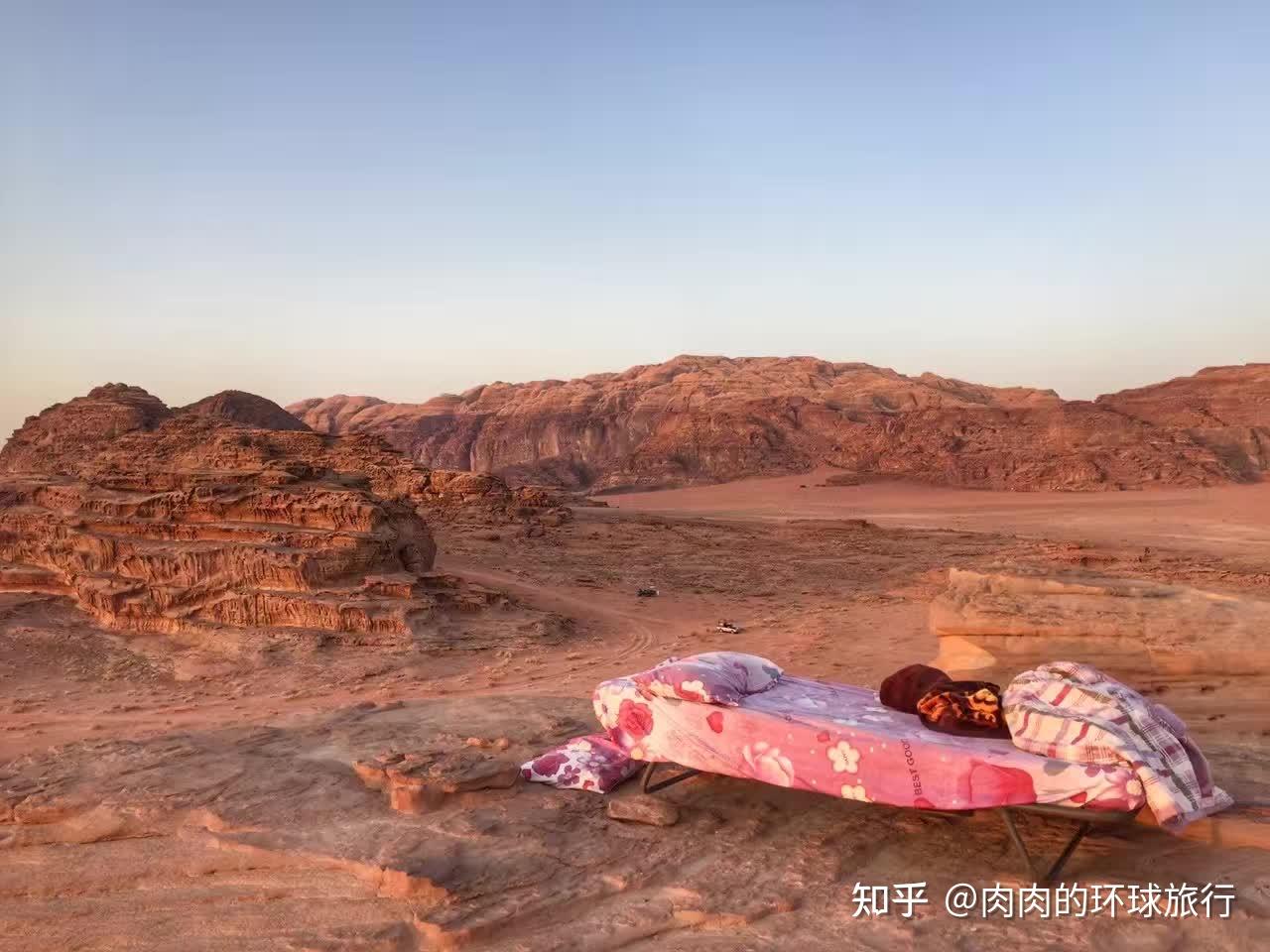 整体给我感觉就是景色很壮丽 红色的戈壁沙漠 真的像火星一样 行程是先坐大巴到景区里 然后越野车来接 带去各个点玩 住宿是在当地贝都因游牧民的帐篷(那个露天床是我特意要放外面的 方便看日落看星星)第二天早上坐车走 价格稍微有点贵 不过风景确实美
